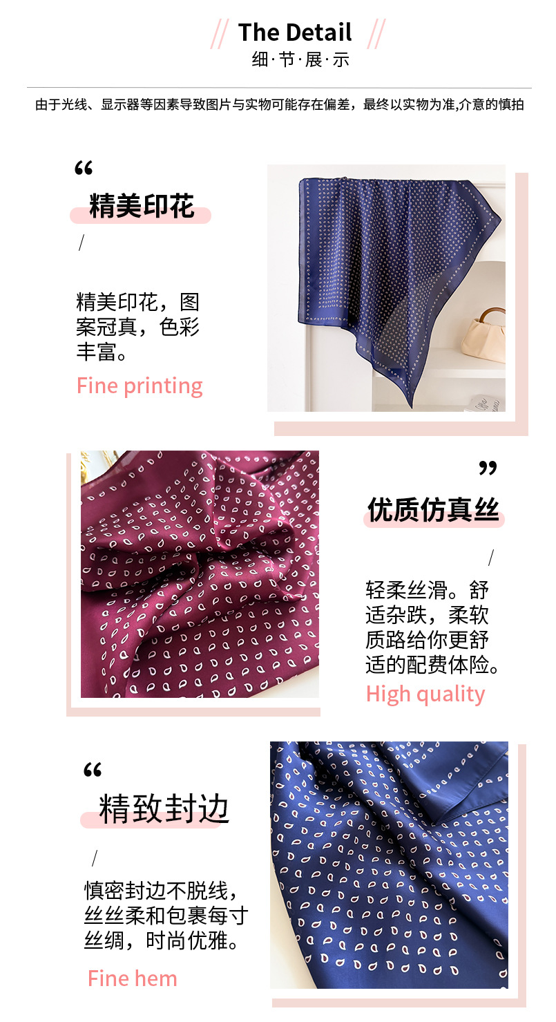 간단한 캐슈 70cm 작은 광장 실크 스카프 봄 여름 인쇄 스카프 전문 올 매치 스카프