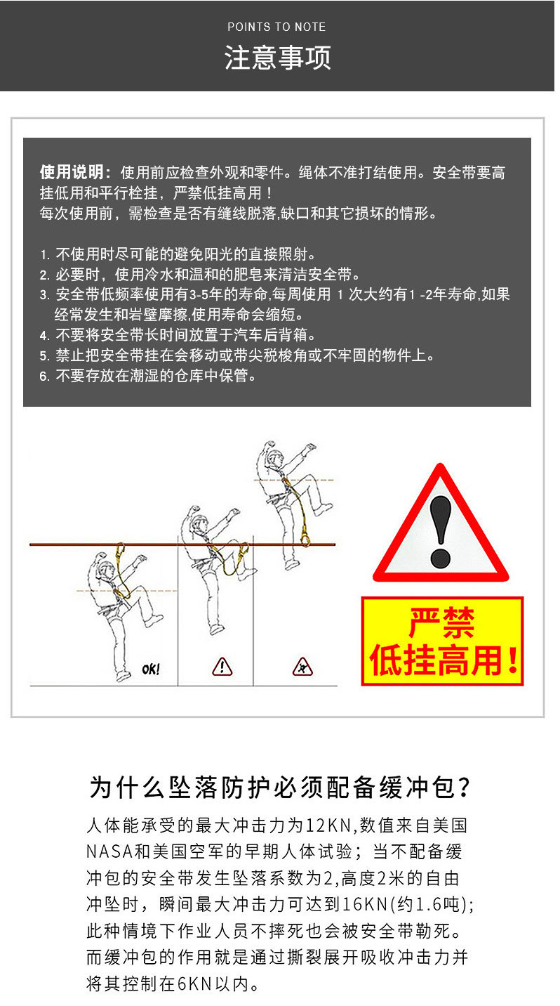 • 안전벨트 + 완충 기능이 있는 1.2m 이중 로프 대형 후크
