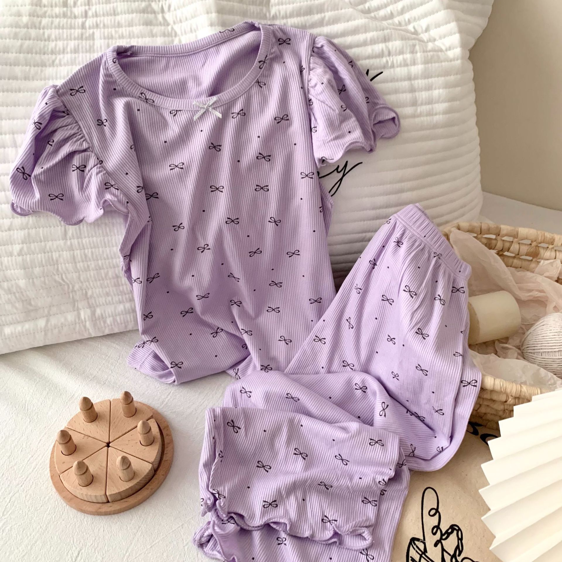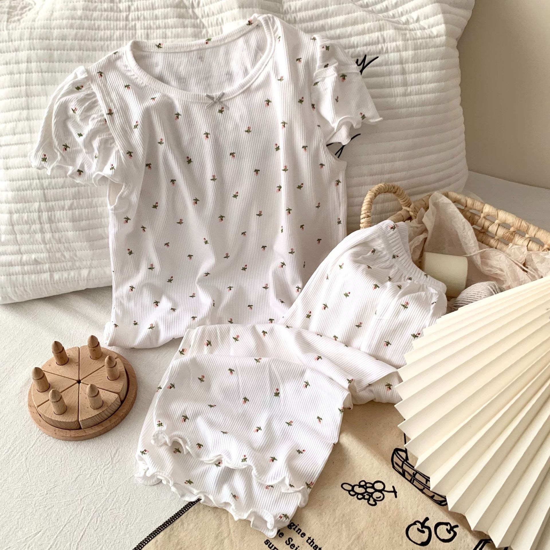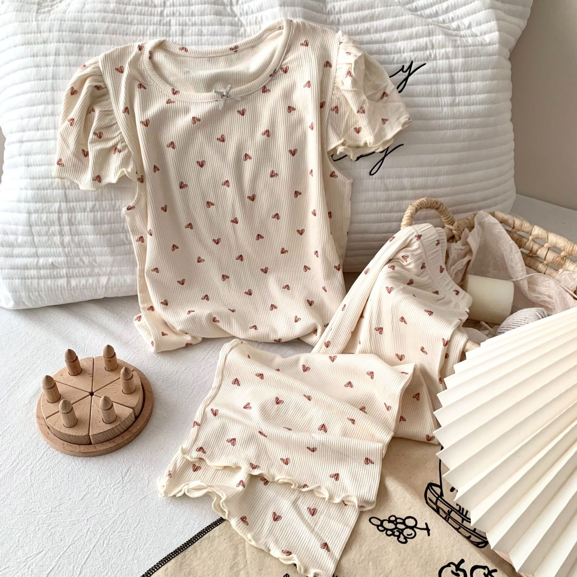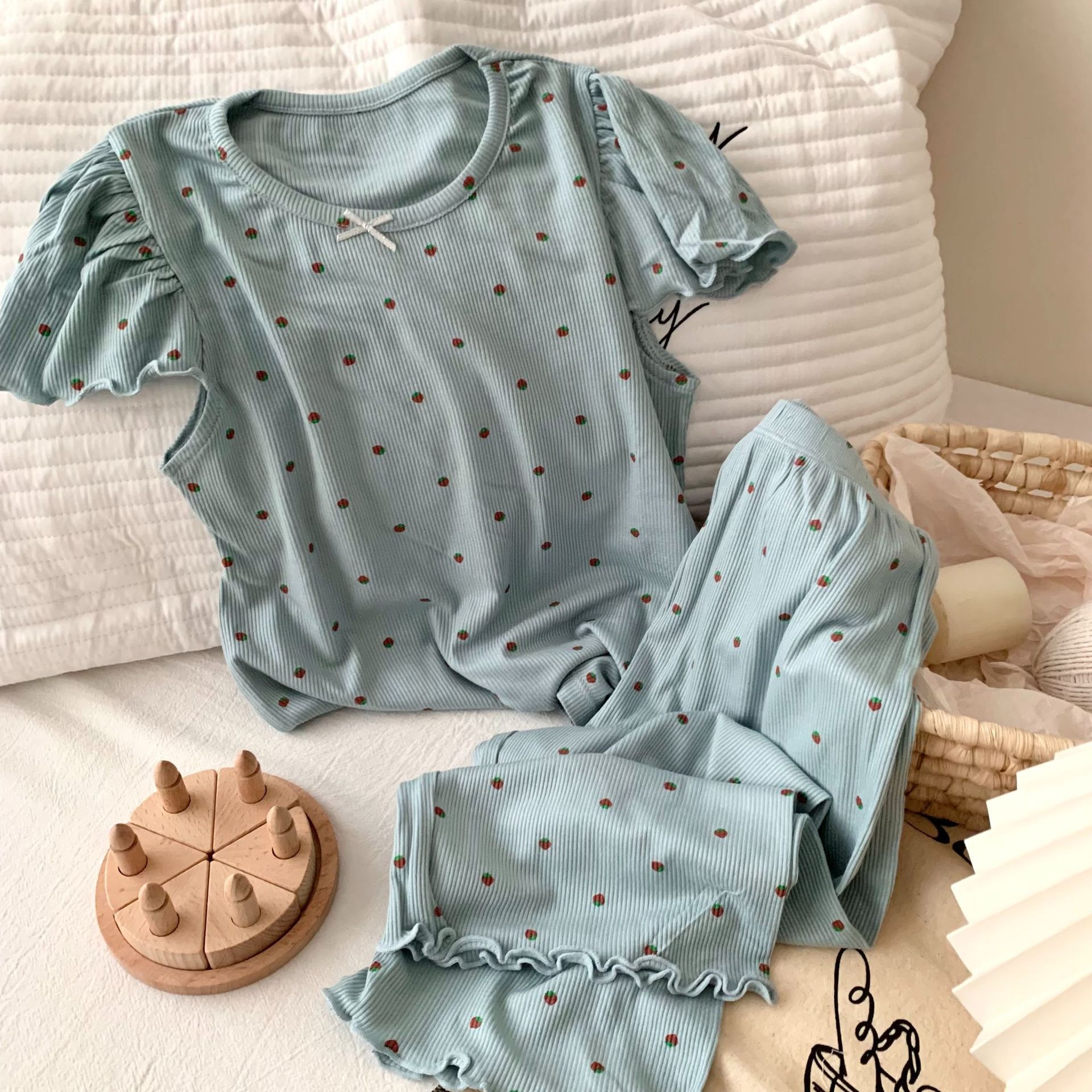 봄과 여름 새로운 북유럽 스타일 홈 옷 여아 잠옷 모달면 니트 벗은 한국 어린이 세트