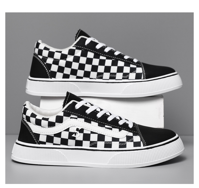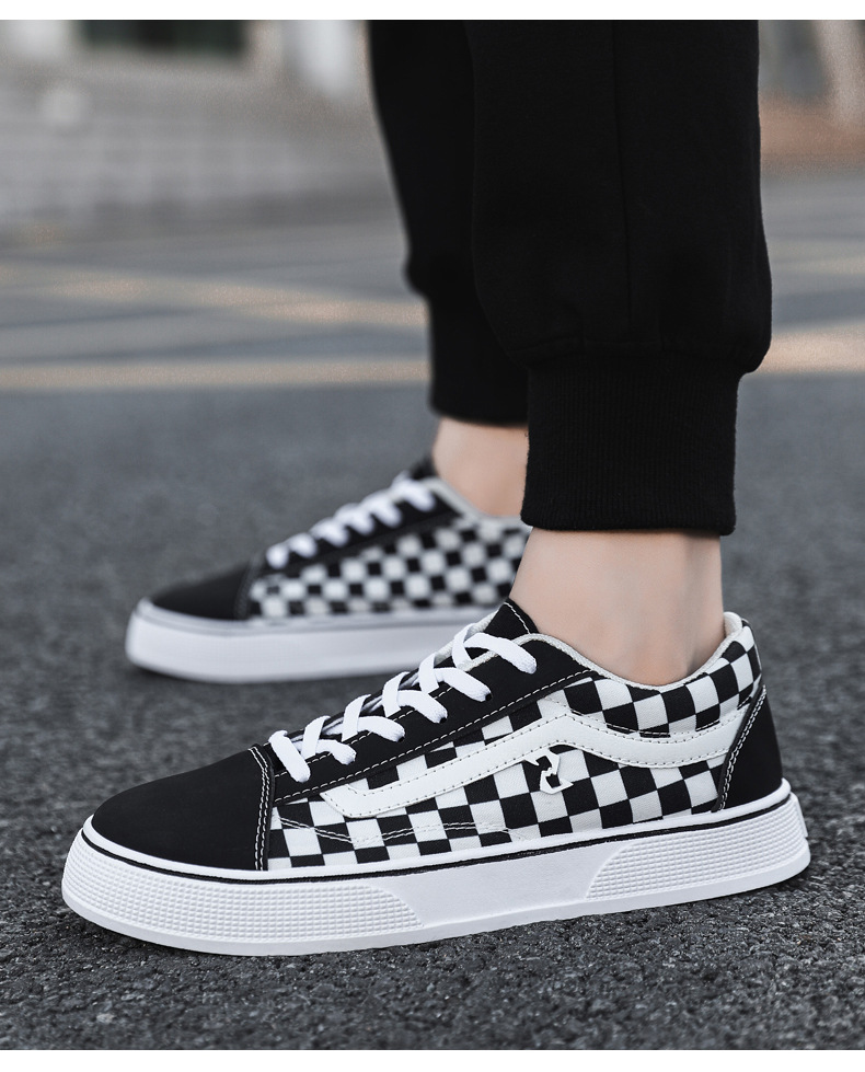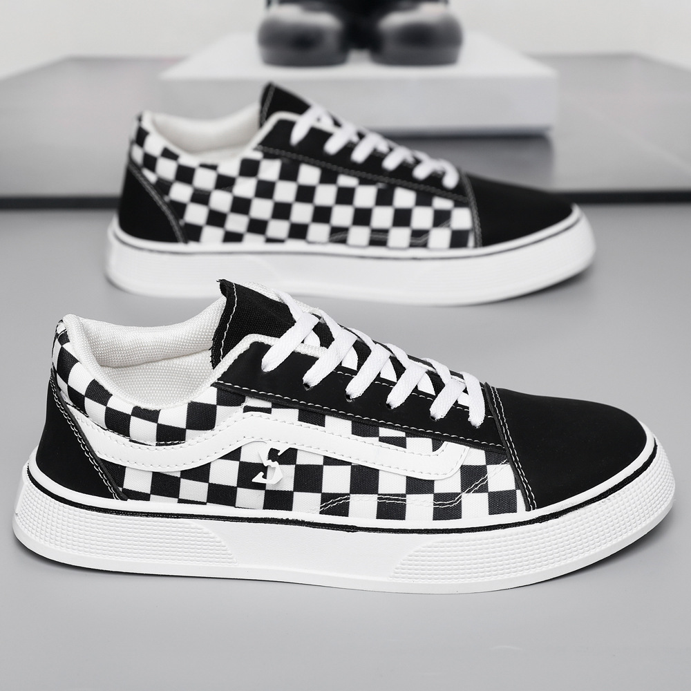 캔버스 신발 가을 새로운 낮은 통기성 캐주얼 신발 한국 스타일 클래식 학생 천 신발 블랙 격자 무늬 올 매치 남성 운동화