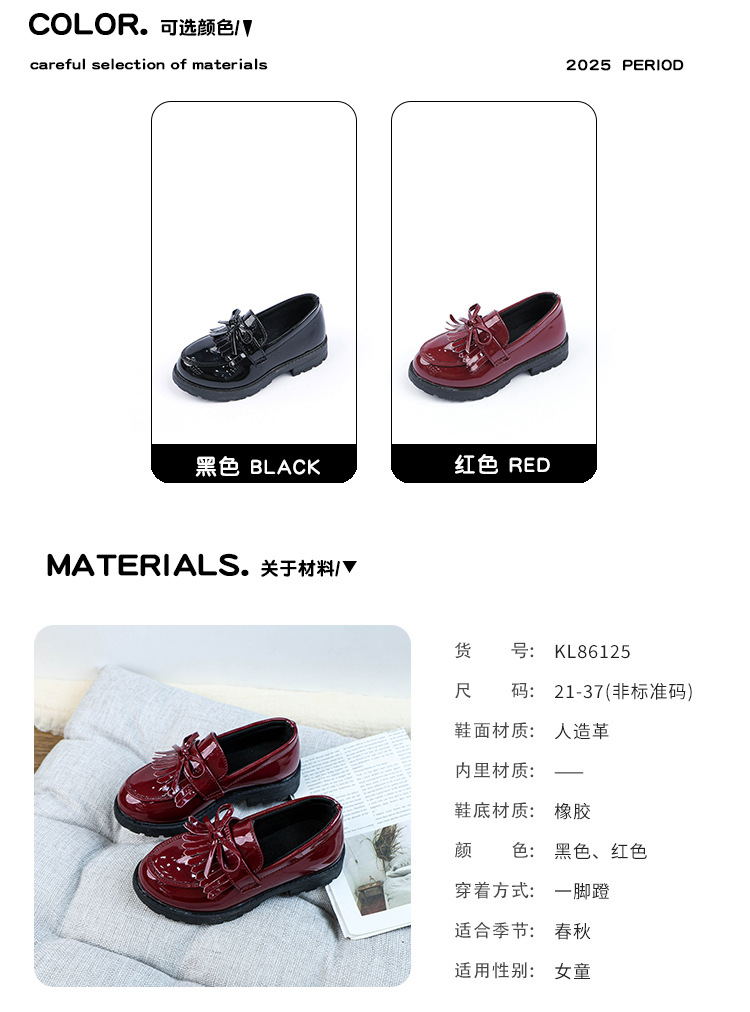 2025 봄 소녀 패션 공주 신발 대학 스타일 댄스 어린이 날 공연 여자 영국 스타일 태슬 신발스토어 가기