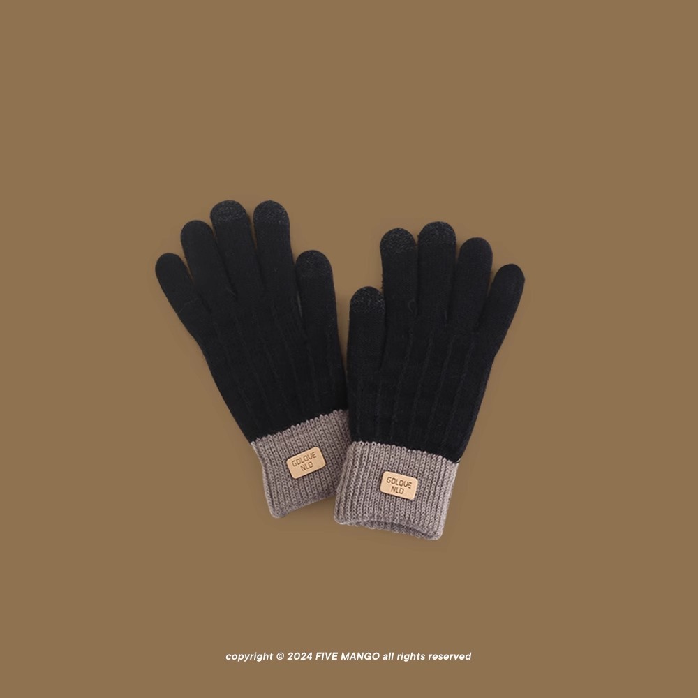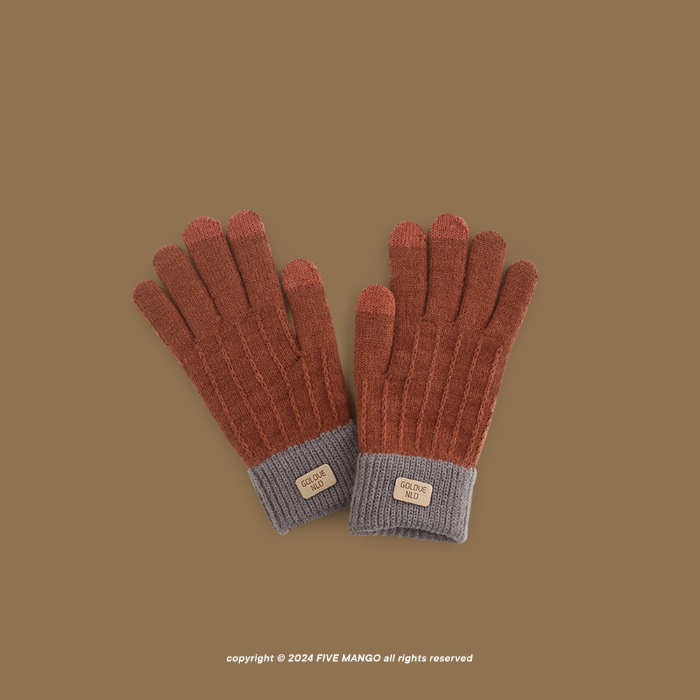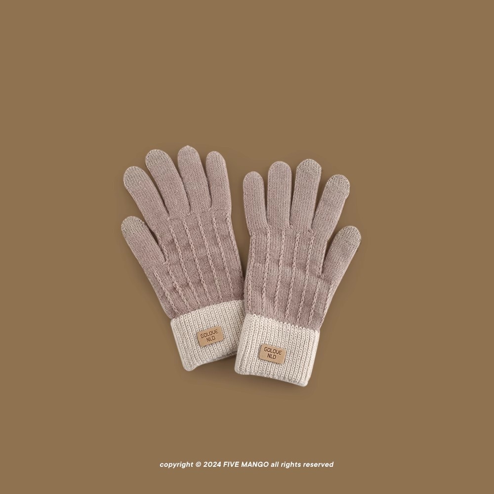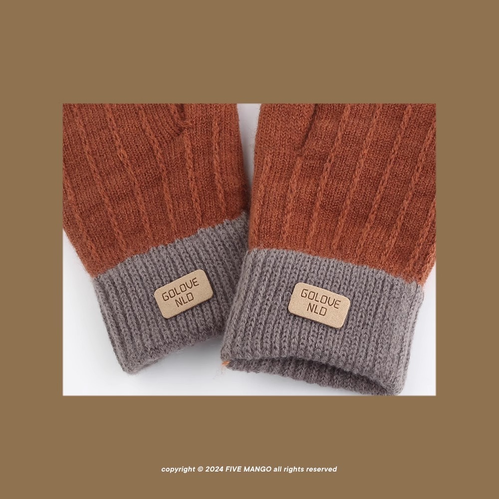 겨울 남녀 따뜻한 자카드 라벨 니트 장갑 캐시미어 터치 스크린 기모 두꺼운 사이클링 핑거 커버
