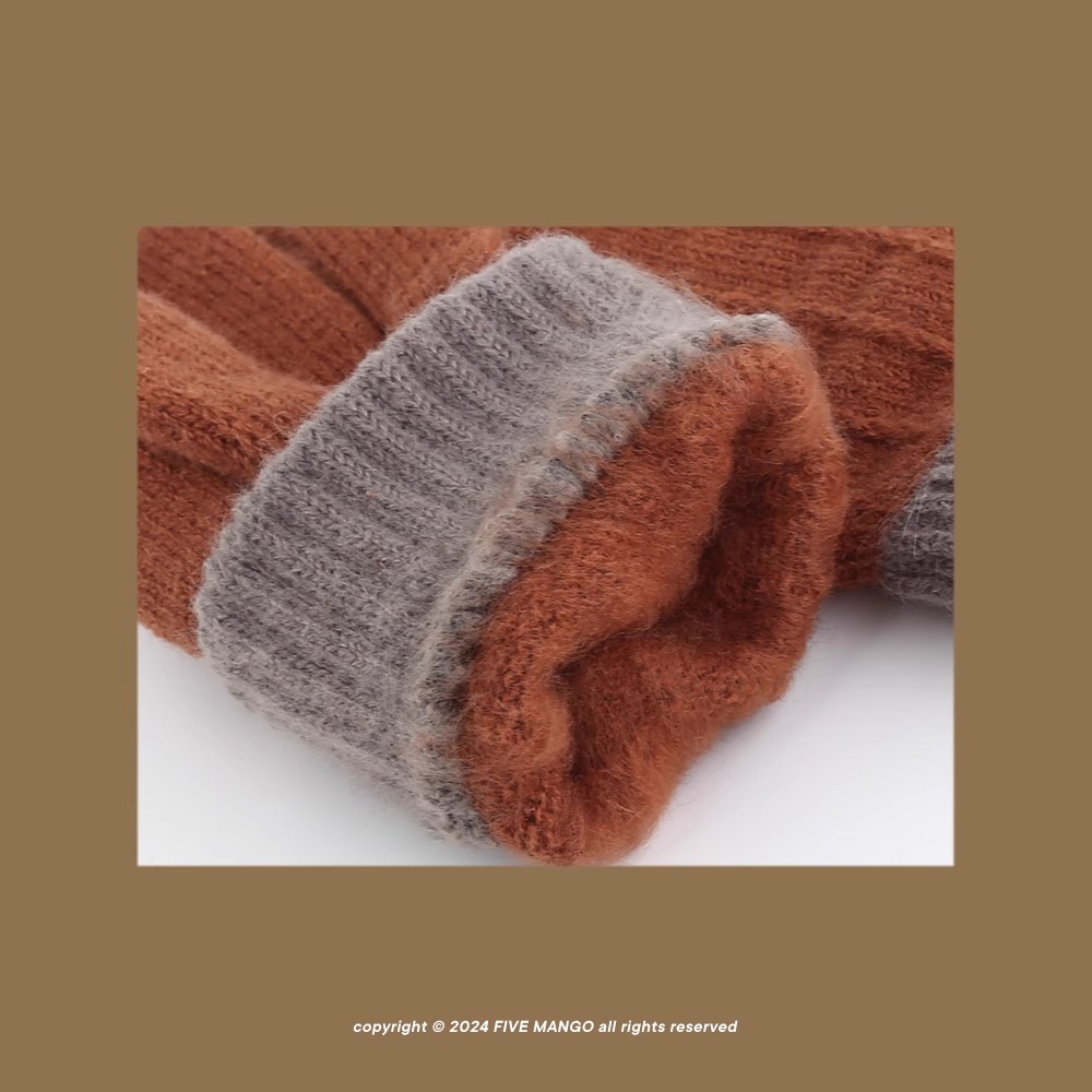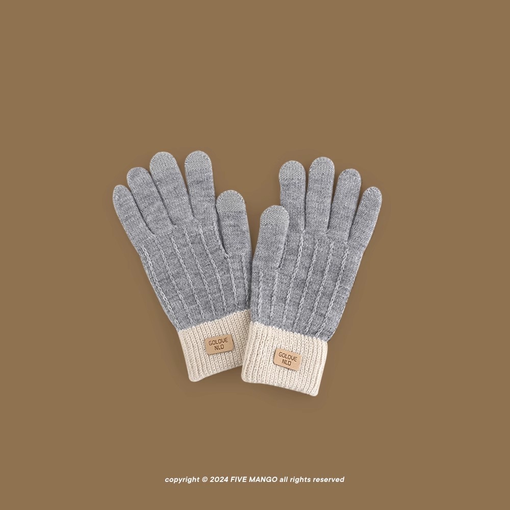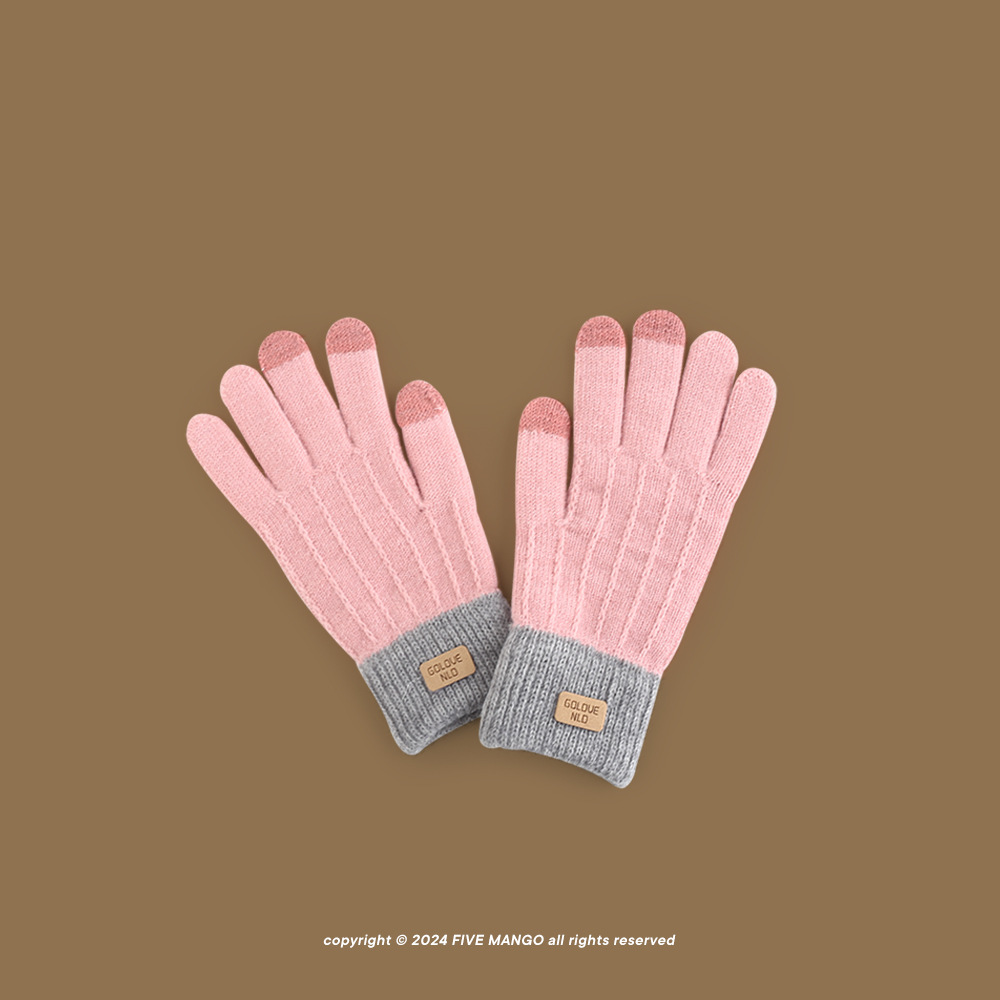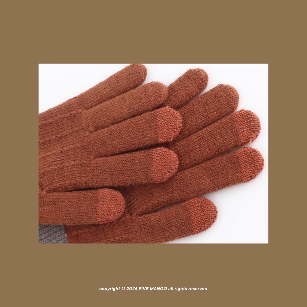 겨울 남녀 따뜻한 자카드 라벨 니트 장갑 캐시미어 터치 스크린 기모 두꺼운 사이클링 핑거 커버