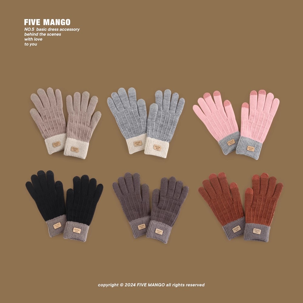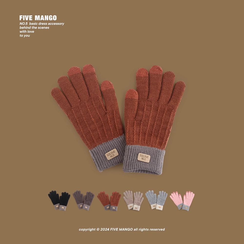 겨울 남녀 따뜻한 자카드 라벨 니트 장갑 캐시미어 터치 스크린 기모 두꺼운 사이클링 핑거 커버스토어 가기