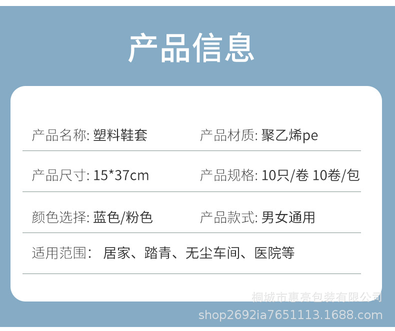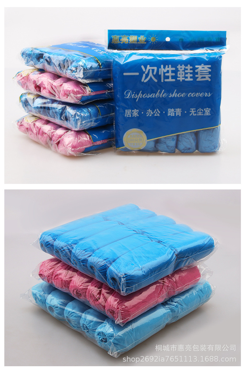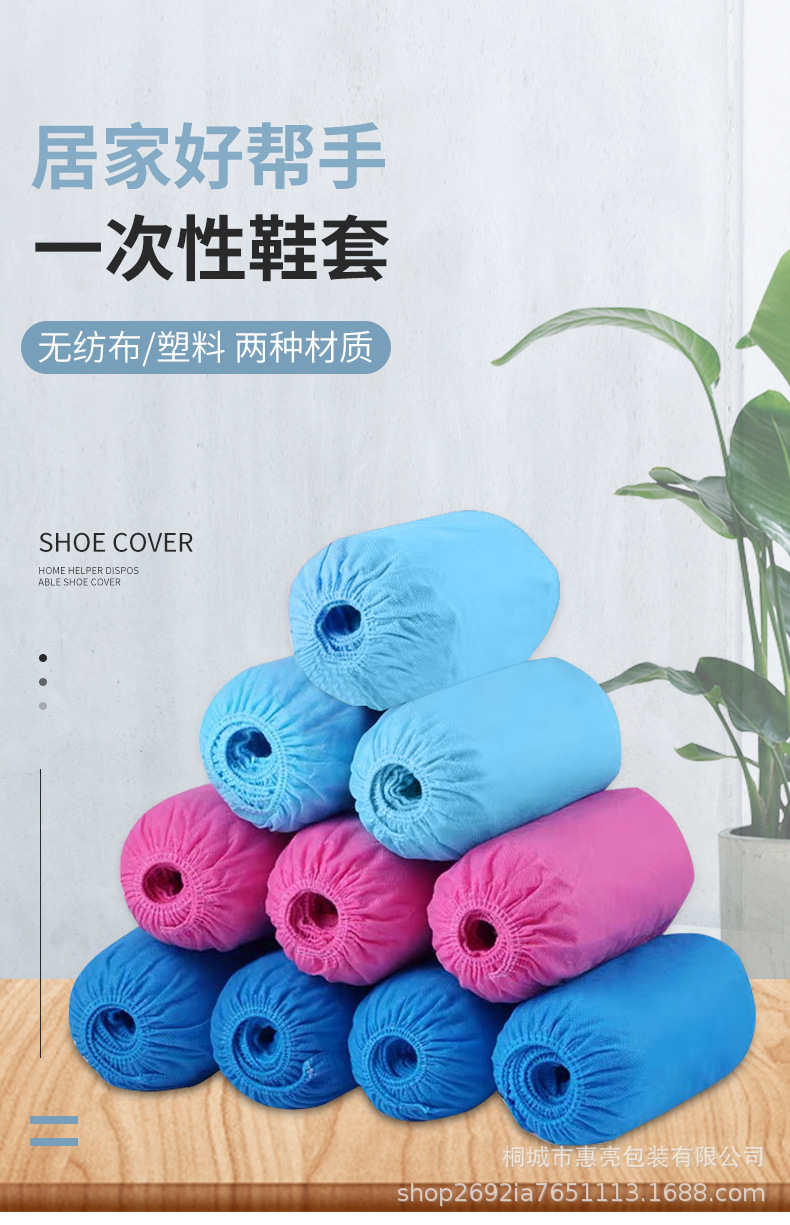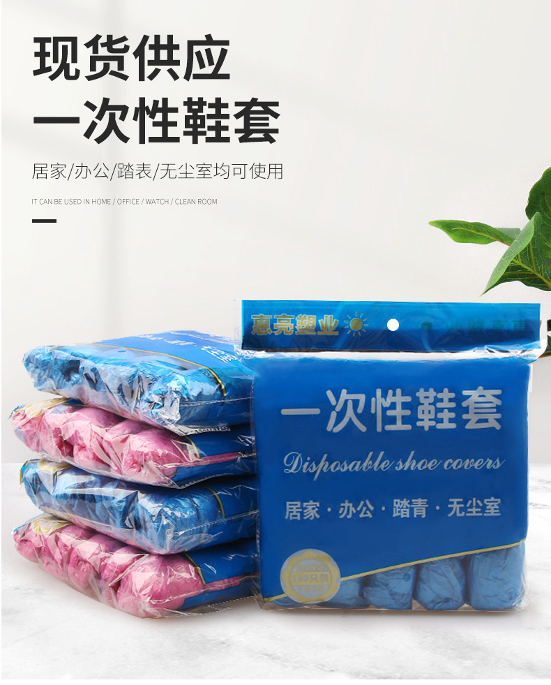 我们的鞋套包装袋有彩色和中性的,材质有HDPP无纺布,聚乙烯PE,氯丙烯CPE三种,无纺布鞋套尺寸15*40cm适合25-45码鞋试穿,PE材质普通尺寸15*37cm 适合25-43码鞋试穿。PE加大码和CPE材质尺寸15*40cm适合25-45码鞋试穿.颜色材质齐全欢迎选购,现货充足,加工贴牌和跨境贴标代发可联系客服,期待与您的合作!谢谢!