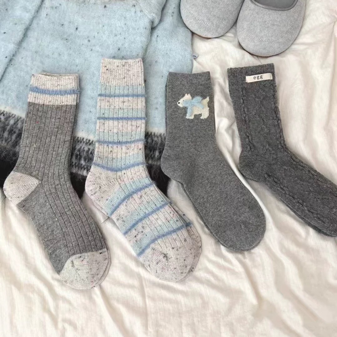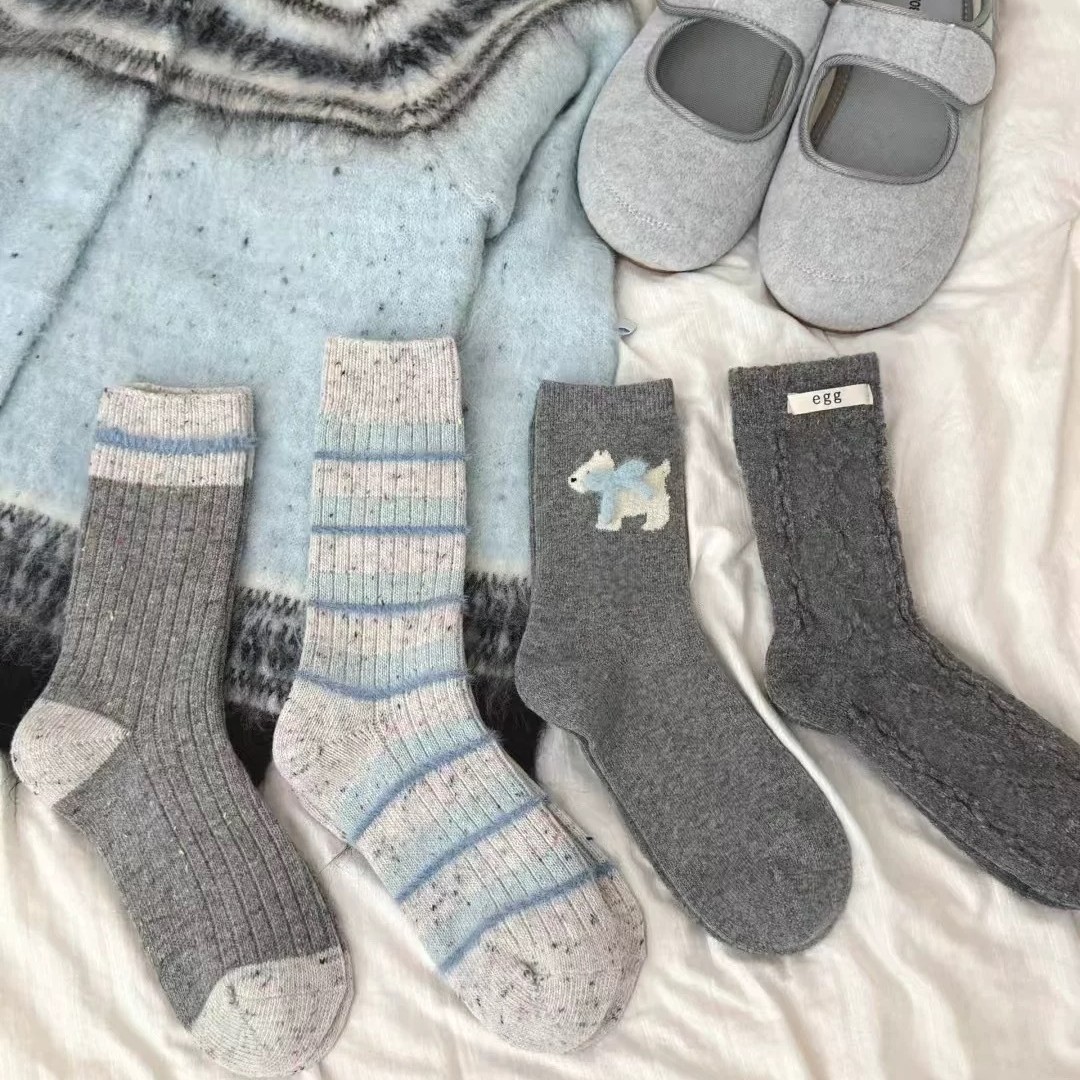 인기 땀 흡수 양모 양말 미끄럼 방지 캐주얼 귀여운 만화 중목 양말 다용도 트렌디 양말 스포츠 양말 여성용 봄 양말