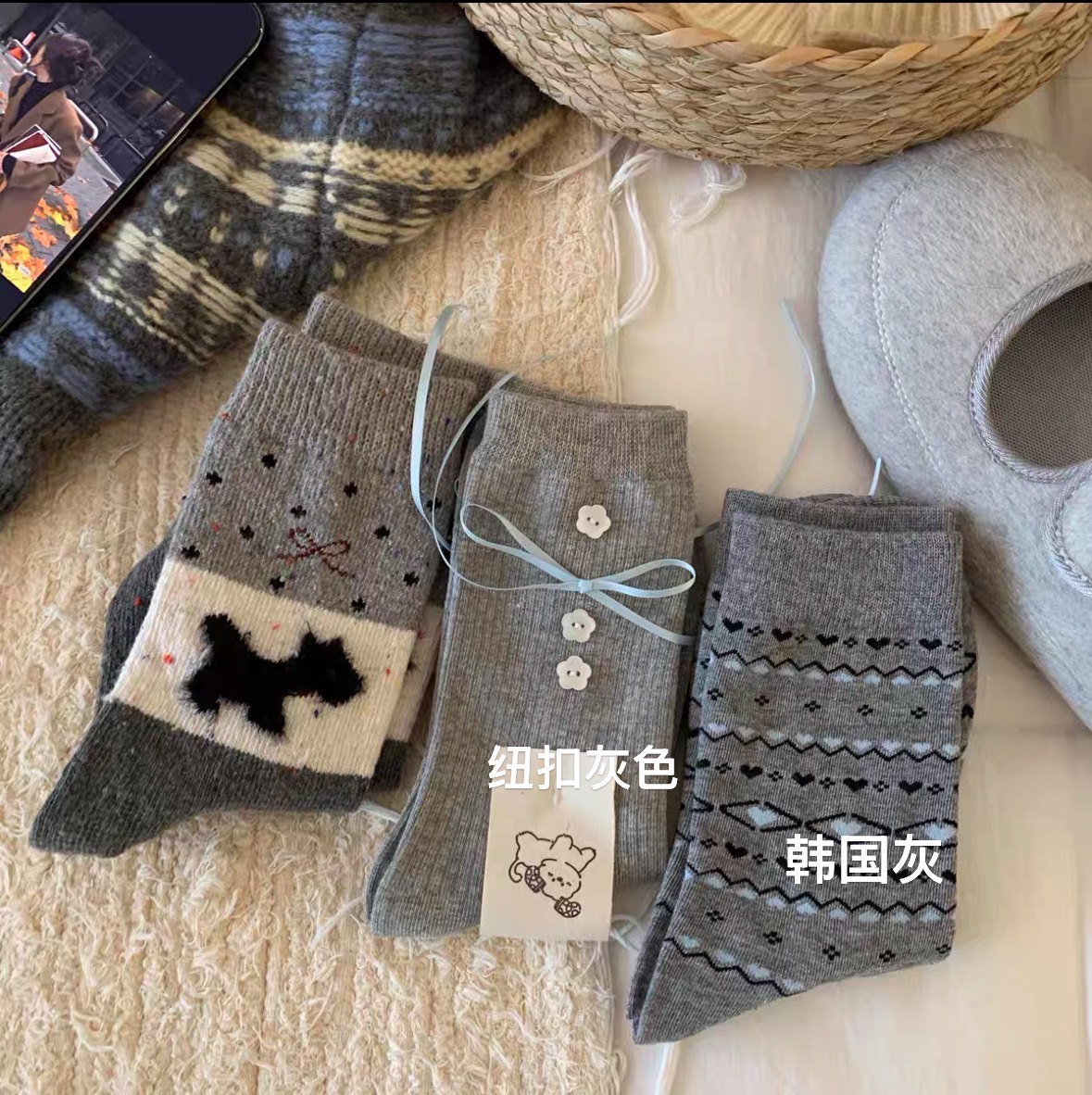 인기 땀 흡수 양모 양말 미끄럼 방지 캐주얼 귀여운 만화 중목 양말 다용도 트렌디 양말 스포츠 양말 여성용 봄 양말스토어 가기