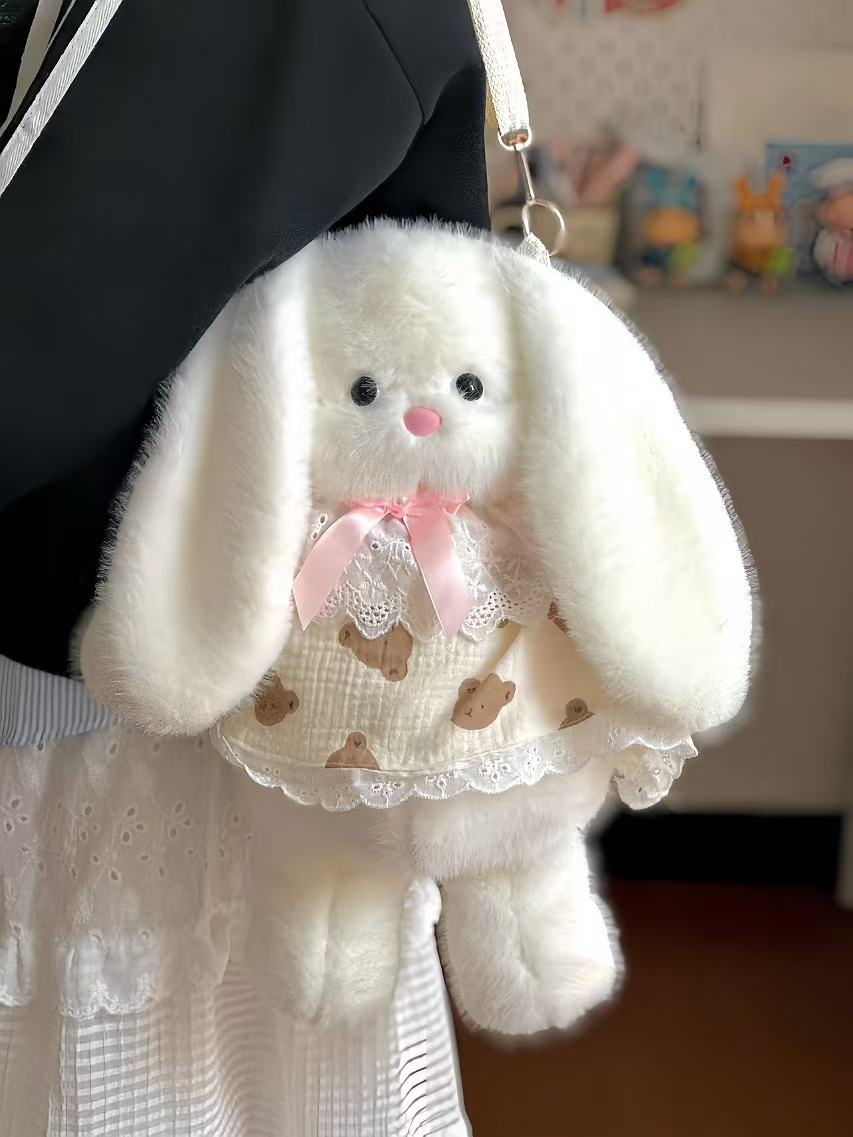 슈퍼 귀여운 숲 스타일 Ins 만화 가방 긴 귀 토끼 가방 크로스 바디 가방 다기능 인형 어깨 가방 봉제 배낭스토어 가기
