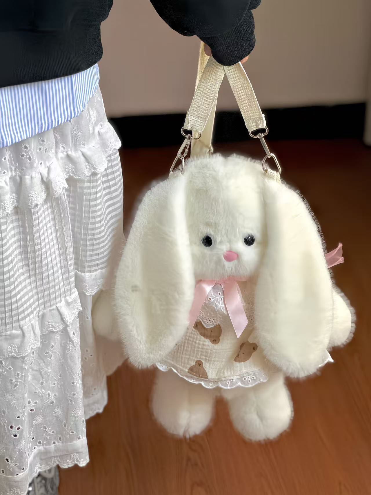 슈퍼 귀여운 숲 스타일 Ins 만화 가방 긴 귀 토끼 가방 크로스 바디 가방 다기능 인형 어깨 가방 봉제 배낭