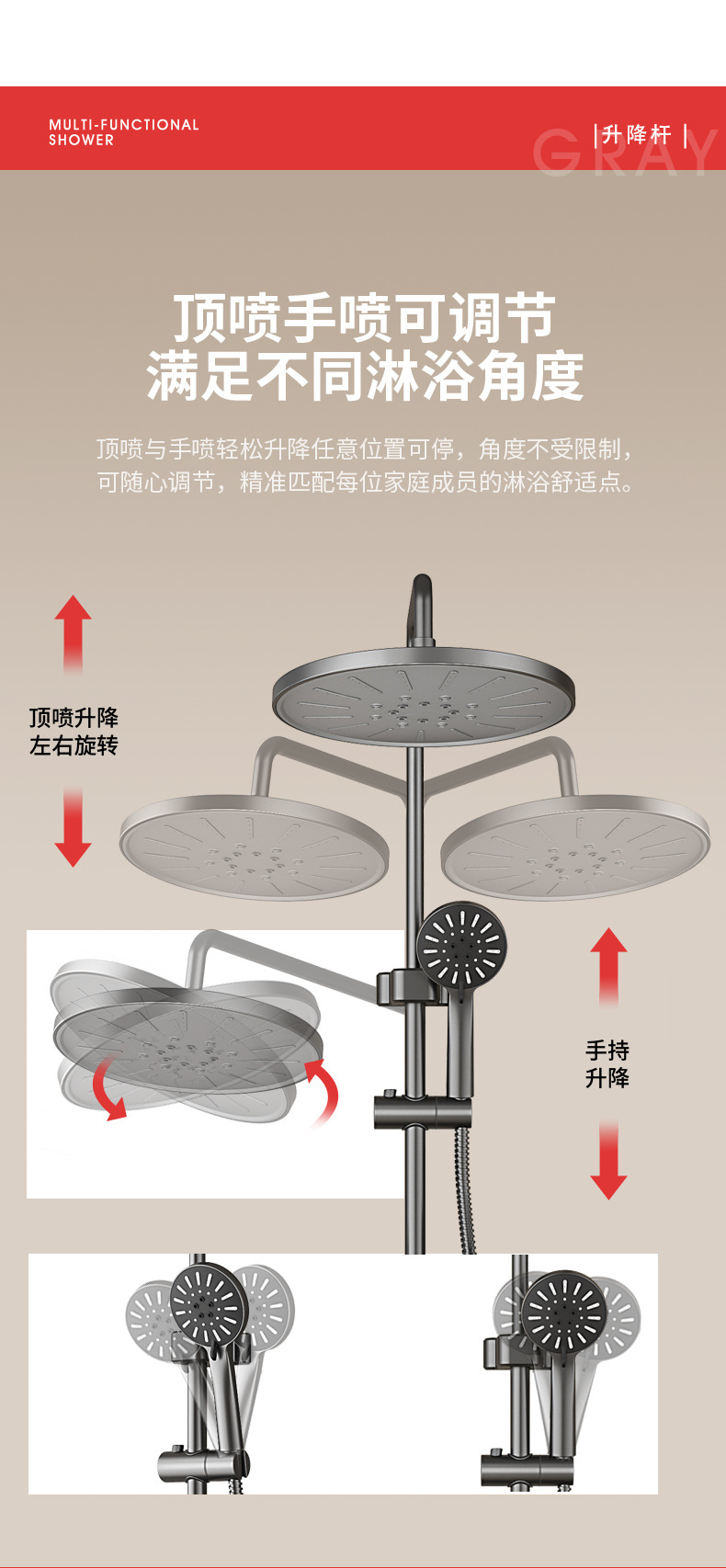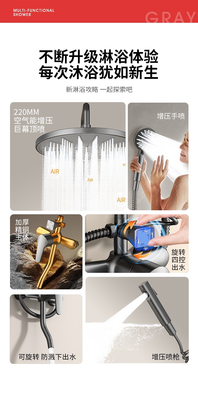 총 회색 가압 샤워 샤워 세트 가정용 샤워 헤드 욕실 욕조 샤워 헤드