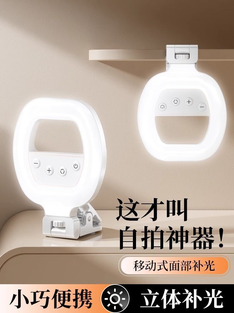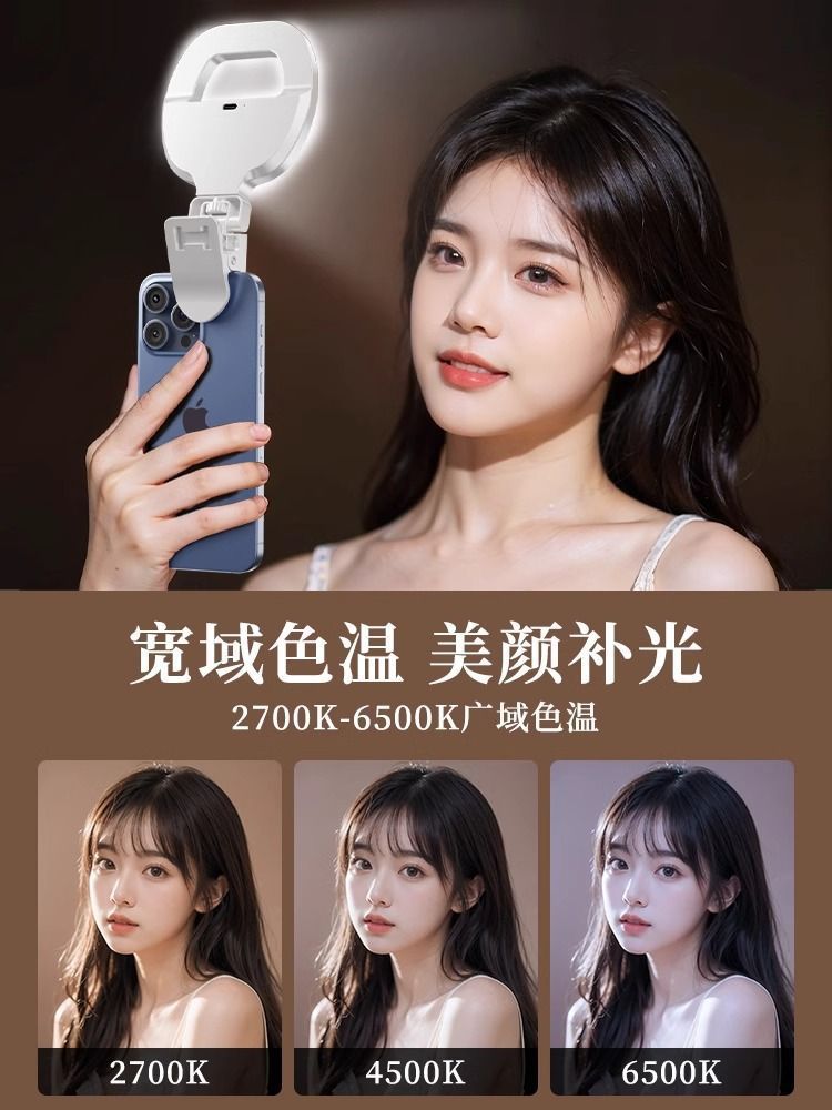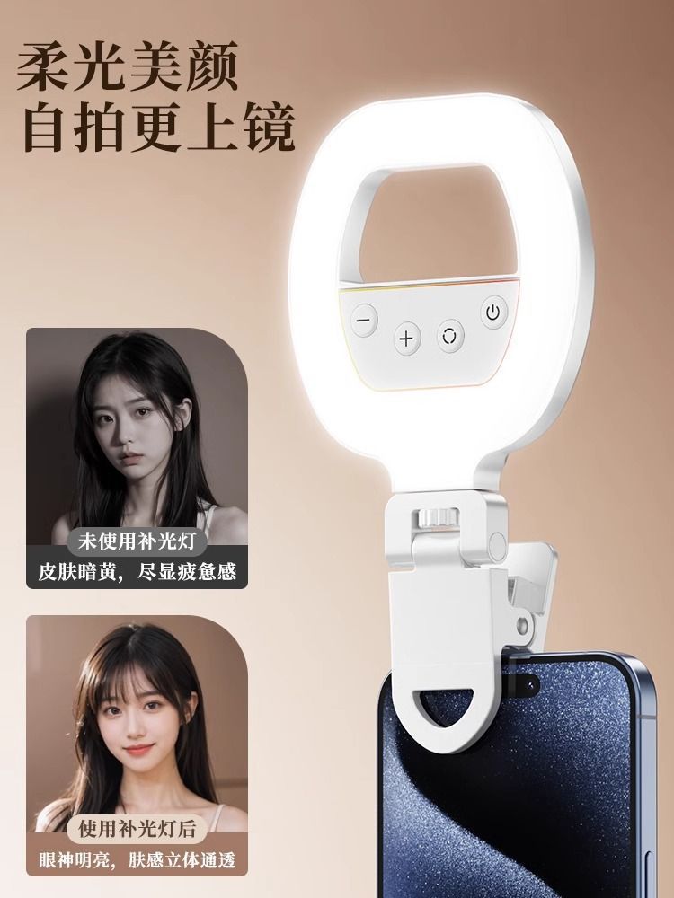 휴대폰 보조 조명 셀카용 핸드헬드 라이브 방송 뷰티 포켓 라이트 클립형 LED 링 라이트 무단계 조광