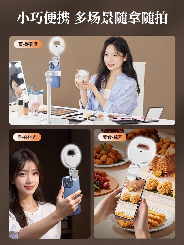 휴대폰 보조 조명 셀카용 핸드헬드 라이브 방송 뷰티 포켓 라이트 클립형 LED 링 라이트 무단계 조광스토어 가기