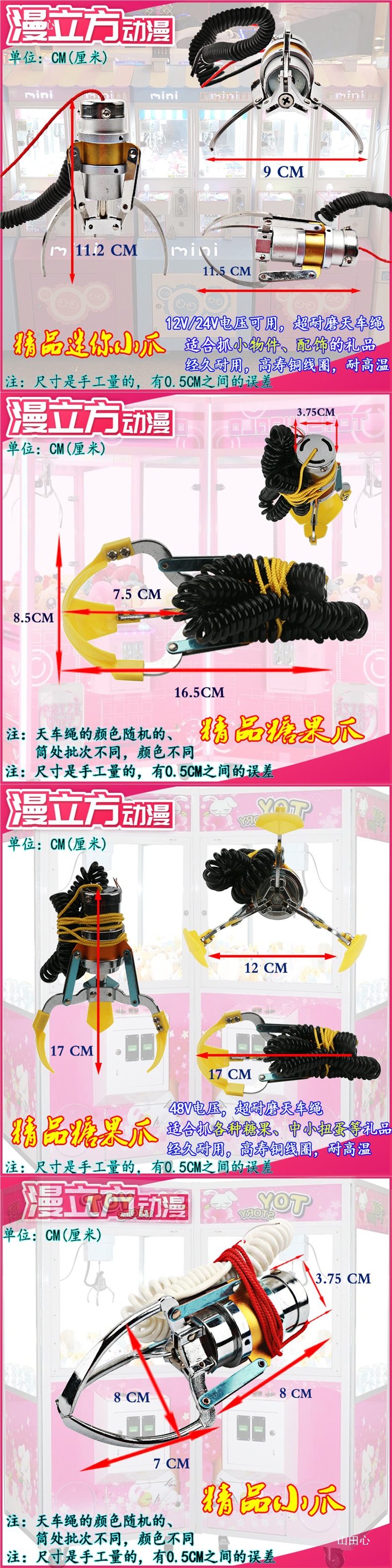 인형뽑기 클로 액세서리, 캔디머신 클립, 인형컬렉션 클로, 대, 중, 소 미니 클립