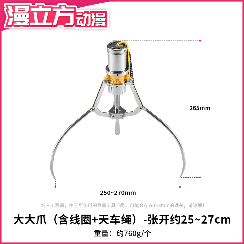 • 표준 튜브 대형 클로 + 코일, 약 25~27cm 열림, 프리 클로 슬리브