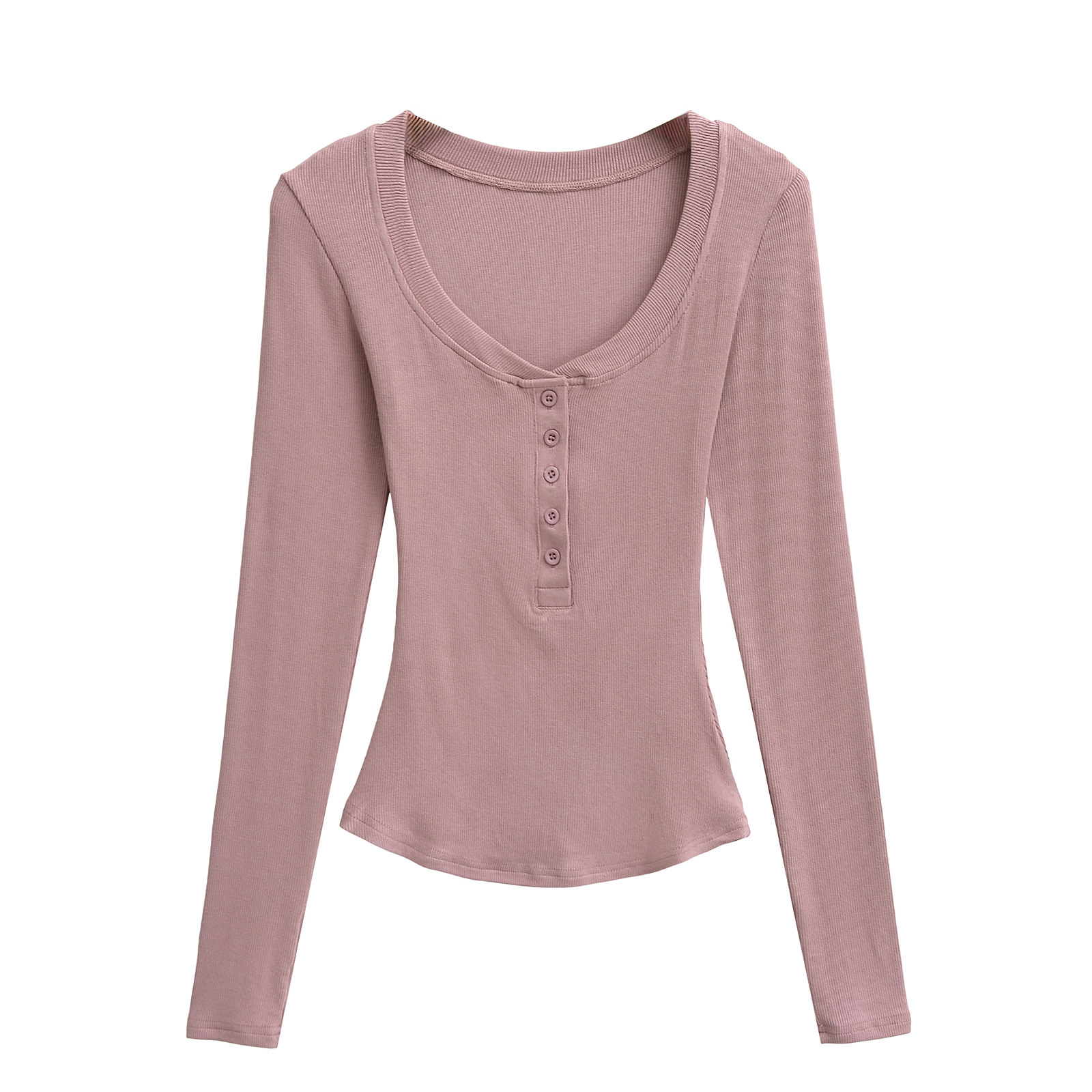 542-유럽과 미국의 패션 U-넥 조커 긴팔 티셔츠 여성의 2025 새로운 섹시한 슬림 허리베이스 셔츠 탑스토어 가기