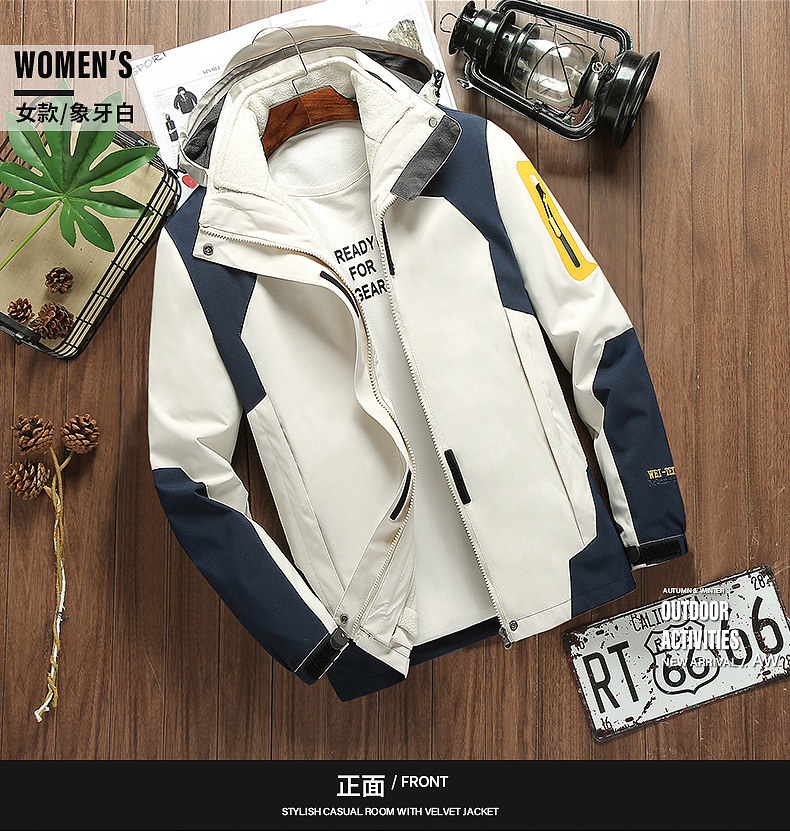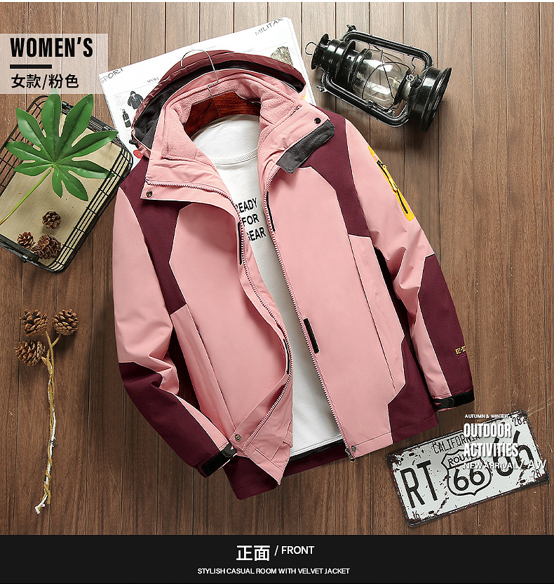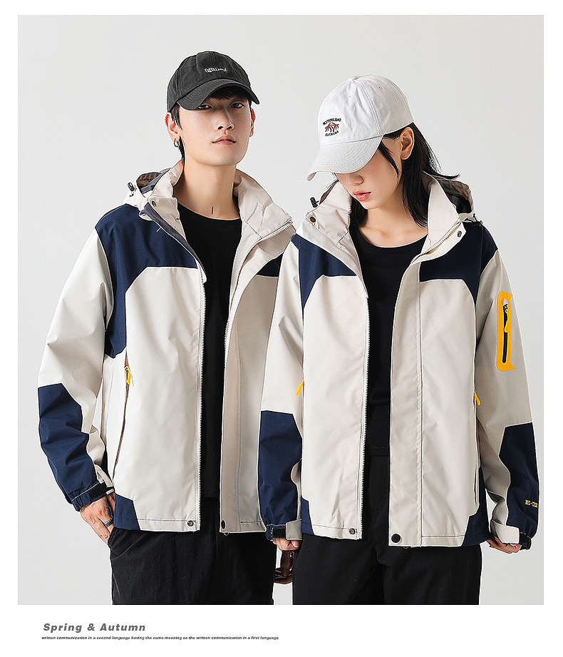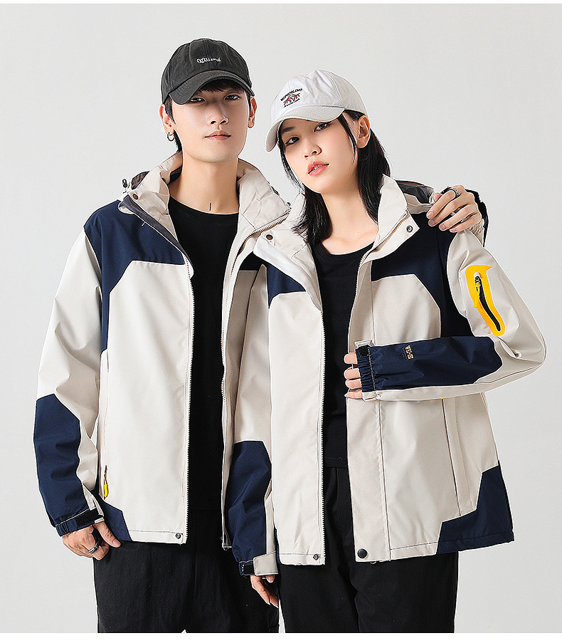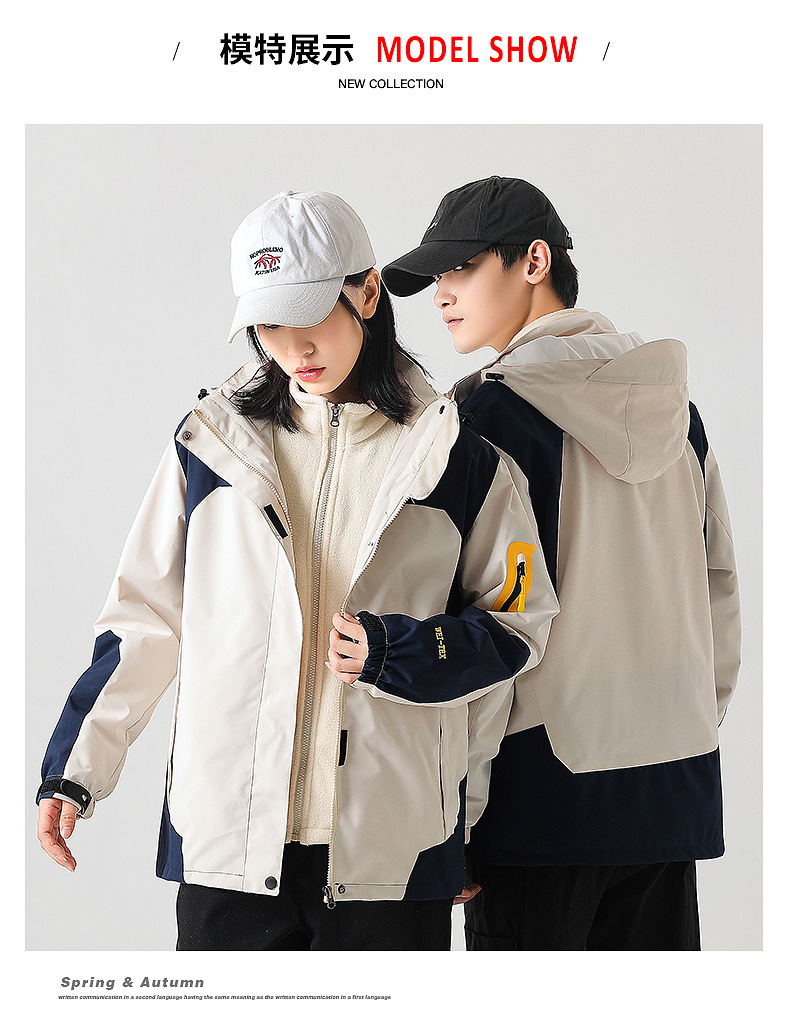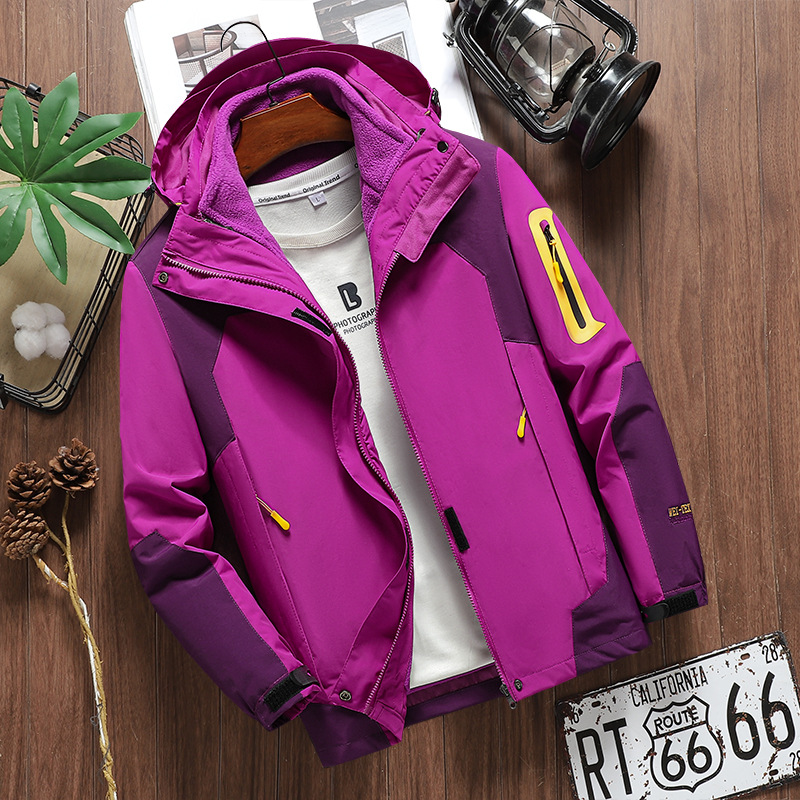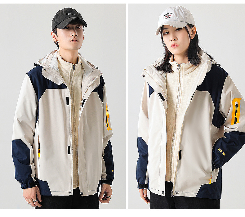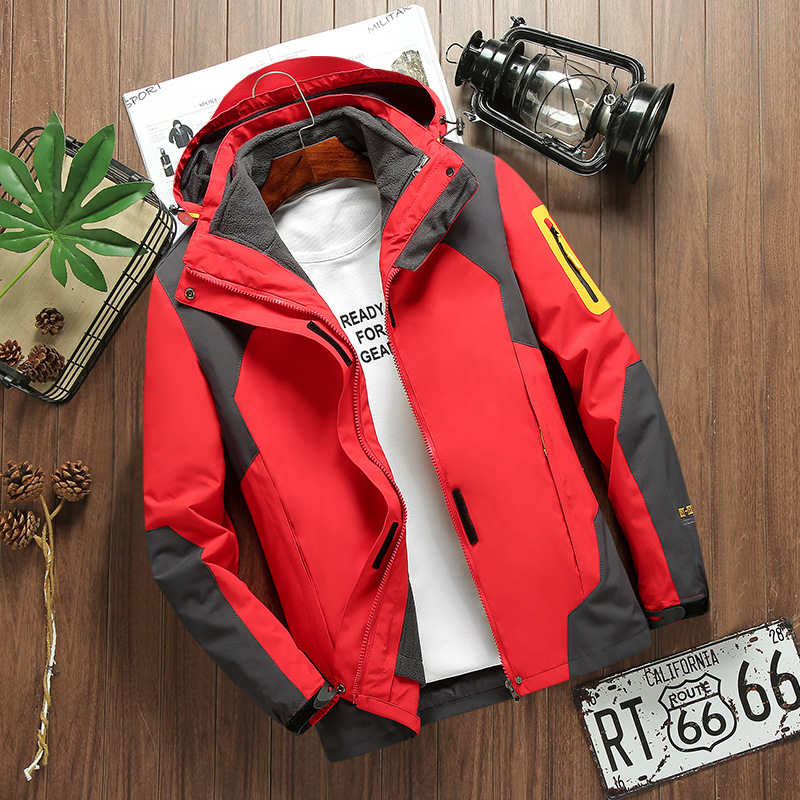 커플 방풍 방수 플러스 사이즈 3 대 1 두꺼운 로커 러시 옷 캐주얼 야외 스포츠 컬러 블록 재킷 코트