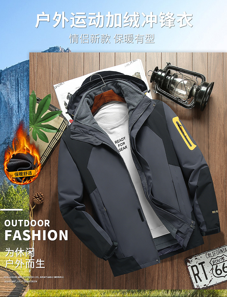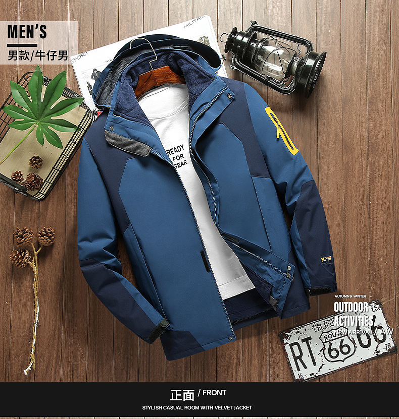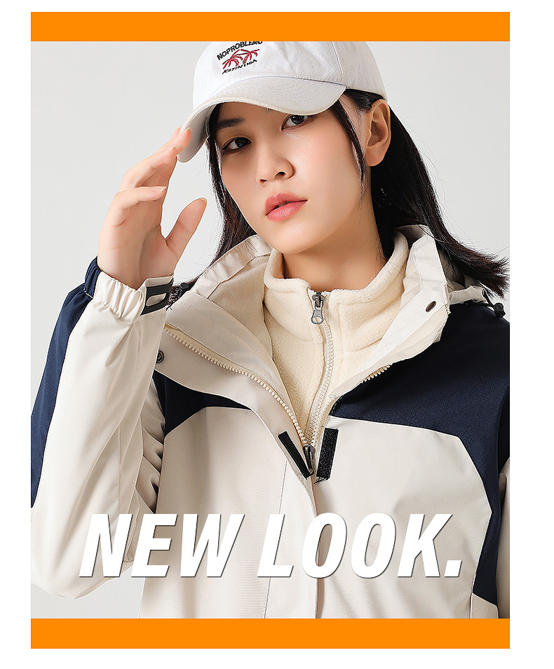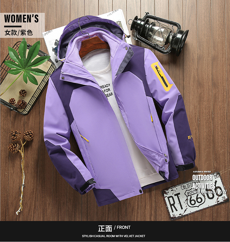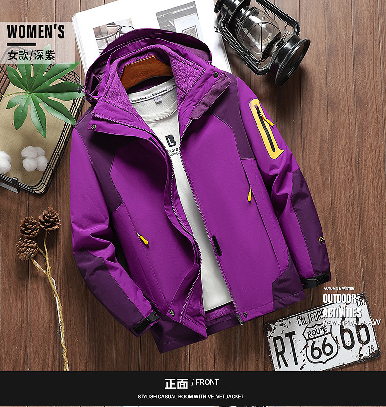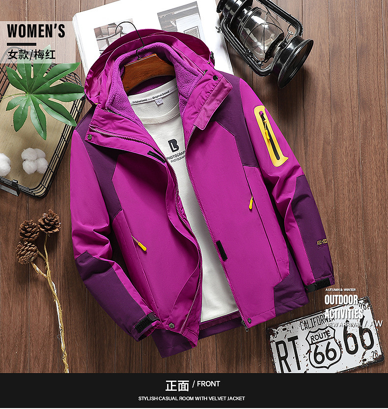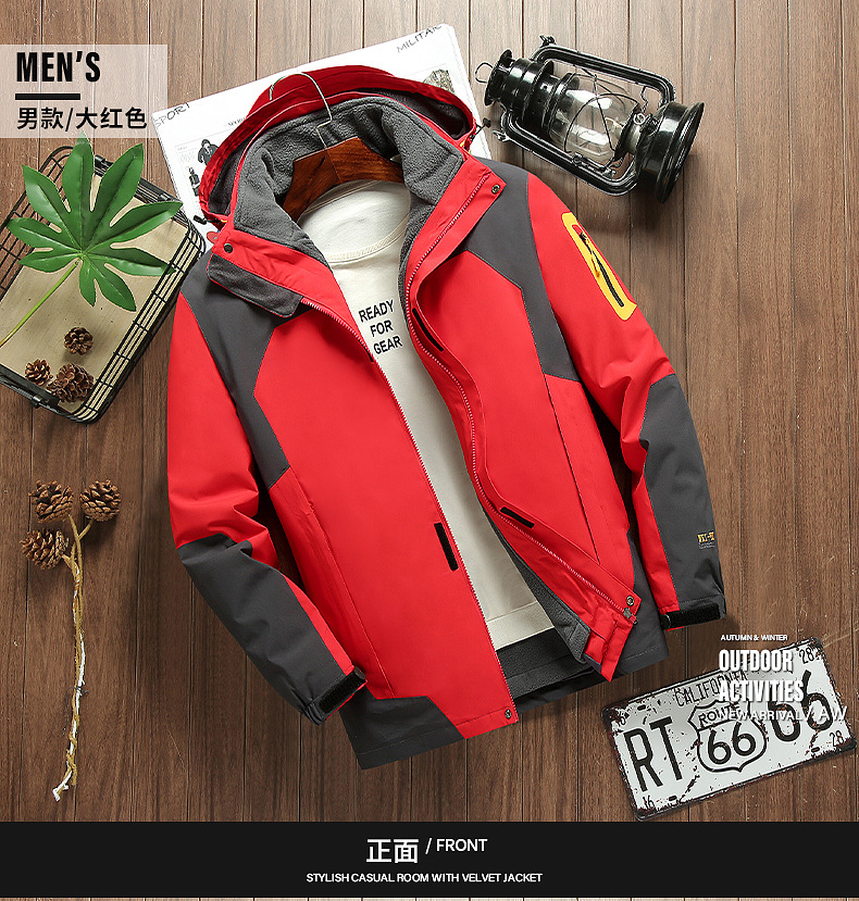 커플 방풍 방수 플러스 사이즈 3 대 1 두꺼운 로커 러시 옷 캐주얼 야외 스포츠 컬러 블록 재킷 코트
