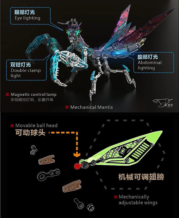 드래곤 제로 새로운 사마귀 금속 조립 모델 창조적 인 수제 3 차원 퍼즐 볼 헤드 움직일 수있는 선물 마그네토 제어 램프스토어 가기