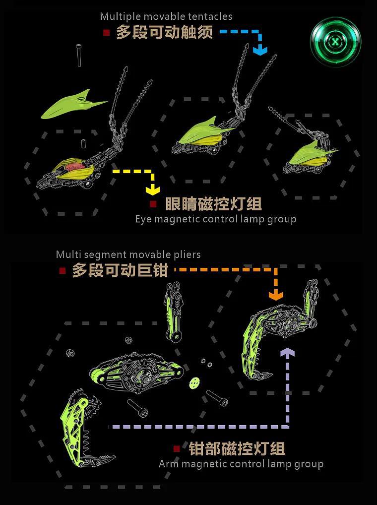 드래곤 제로 새로운 사마귀 금속 조립 모델 창조적 인 수제 3 차원 퍼즐 볼 헤드 움직일 수있는 선물 마그네토 제어 램프