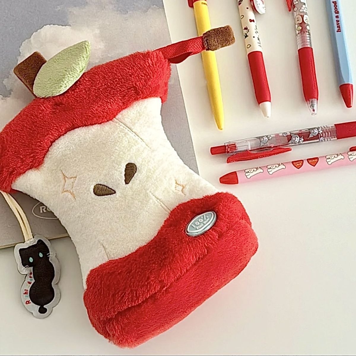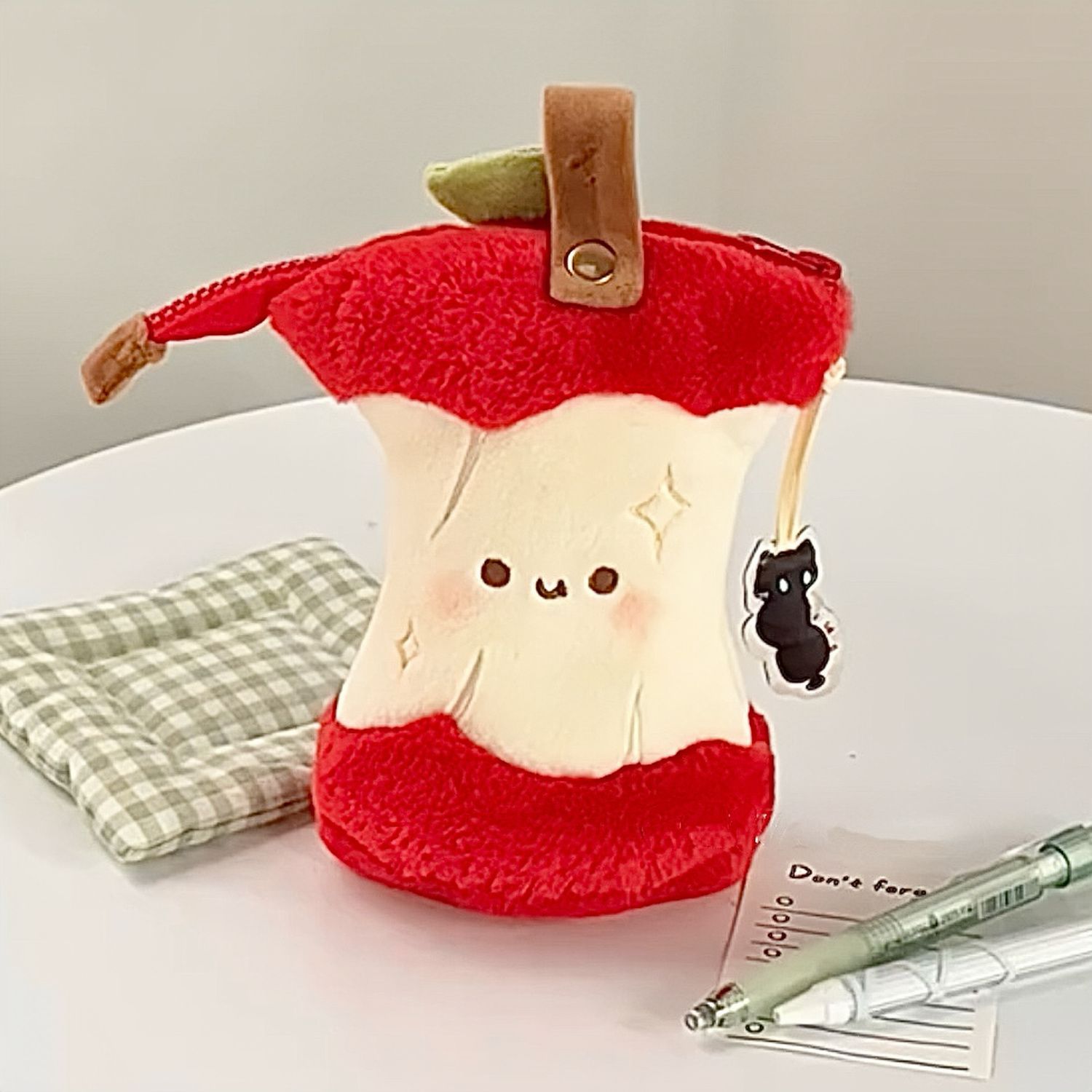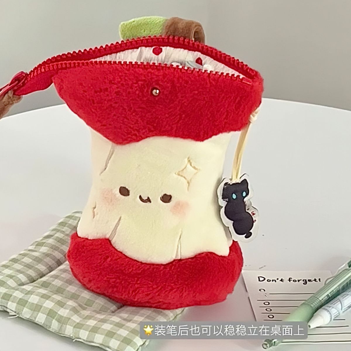 창의적인 빨간 사과 모양의 봉제 필통, 멋스러운 디자인, 세워두는 형태로 사용 가능, 초등학생, 중학생, 고등학생 여학생용