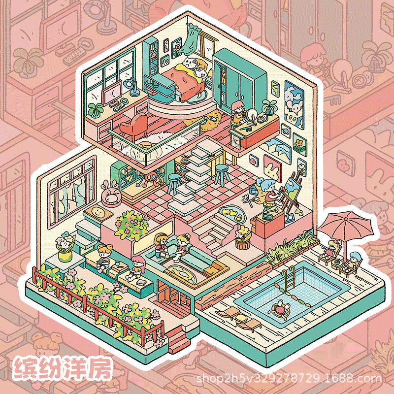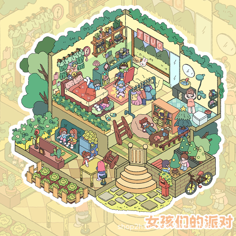 스퀘어 박스 워크샵 원더 홈 시리즈 풍경 스티커 시뮬레이션 샵 캐빈 픽셀 게임 스티커 시리즈 풍경 네트워크스토어 가기