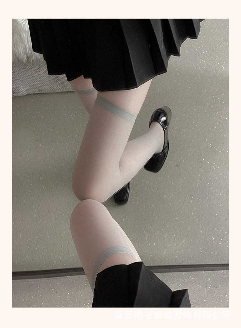 검은 실크 스타킹 레이스 반 무릎 양말 감성 생선 스타킹 중간 길이의 스타킹 섹시한 스타킹 순수 화이트 실크 여름