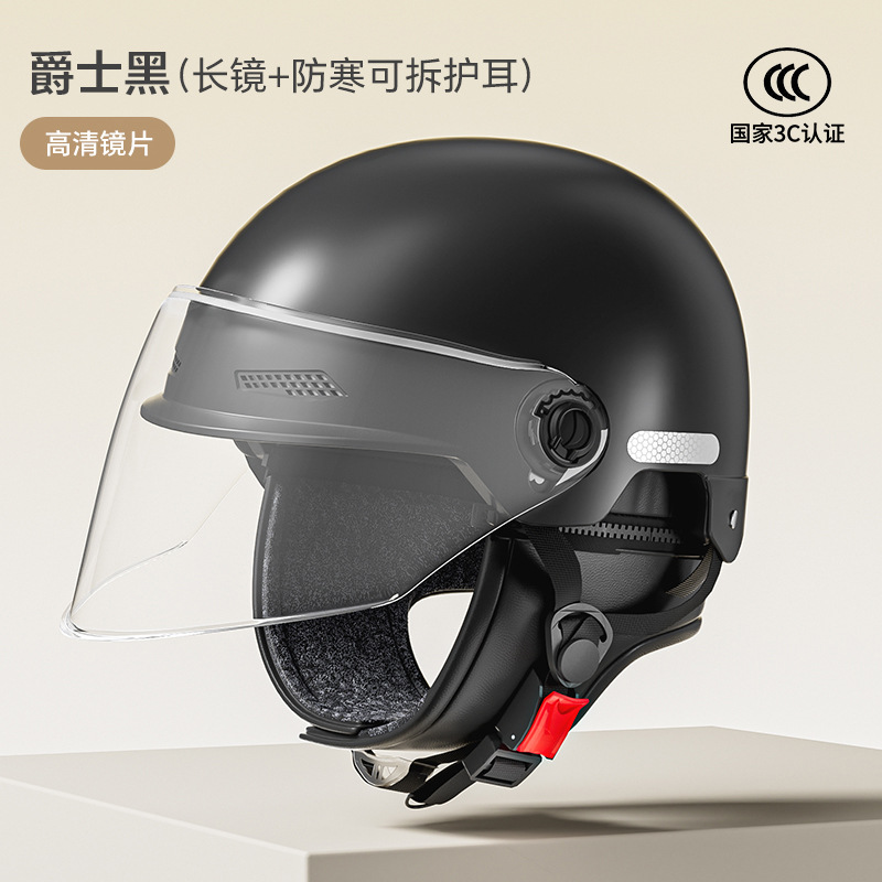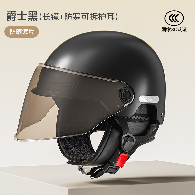 • "3C 인증 재즈 블랙 ""자외선 차단 장경 + 방한 탈착식 귀 보호""."