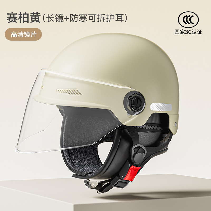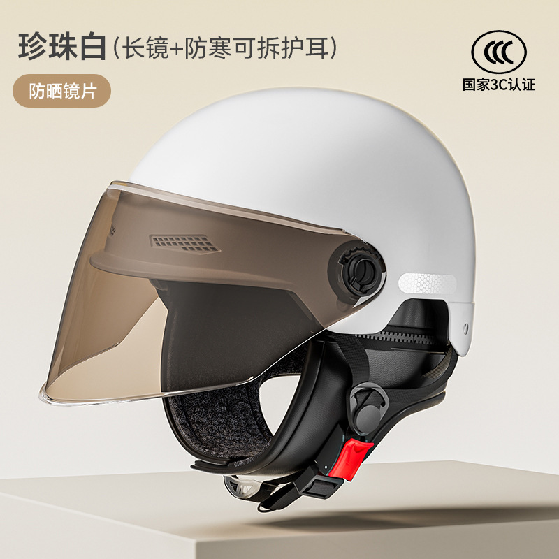 • "3C 인증 펄 화이트 ""자외선 차단 장경 + 방한 탈착식 귀 보호""."
