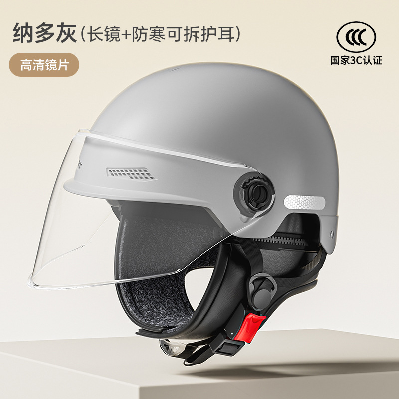 • "3C 인증 나도 그레이 ""HD 롱 미러 + 방한 탈착식 귀 보호""."