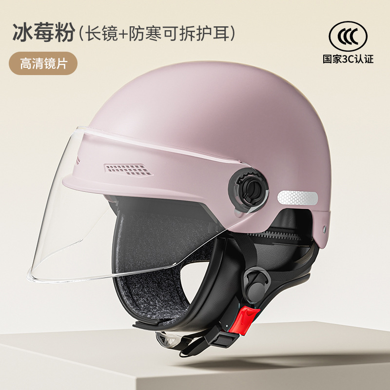 • "3C 인증 아이스베리 파우더 ""HD 롱미러 + 방한 탈착식 귀 보호""."