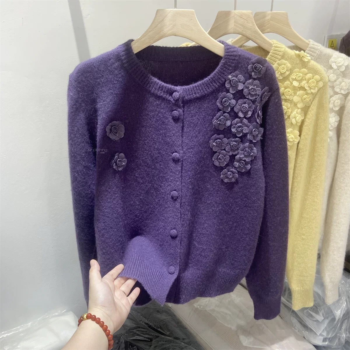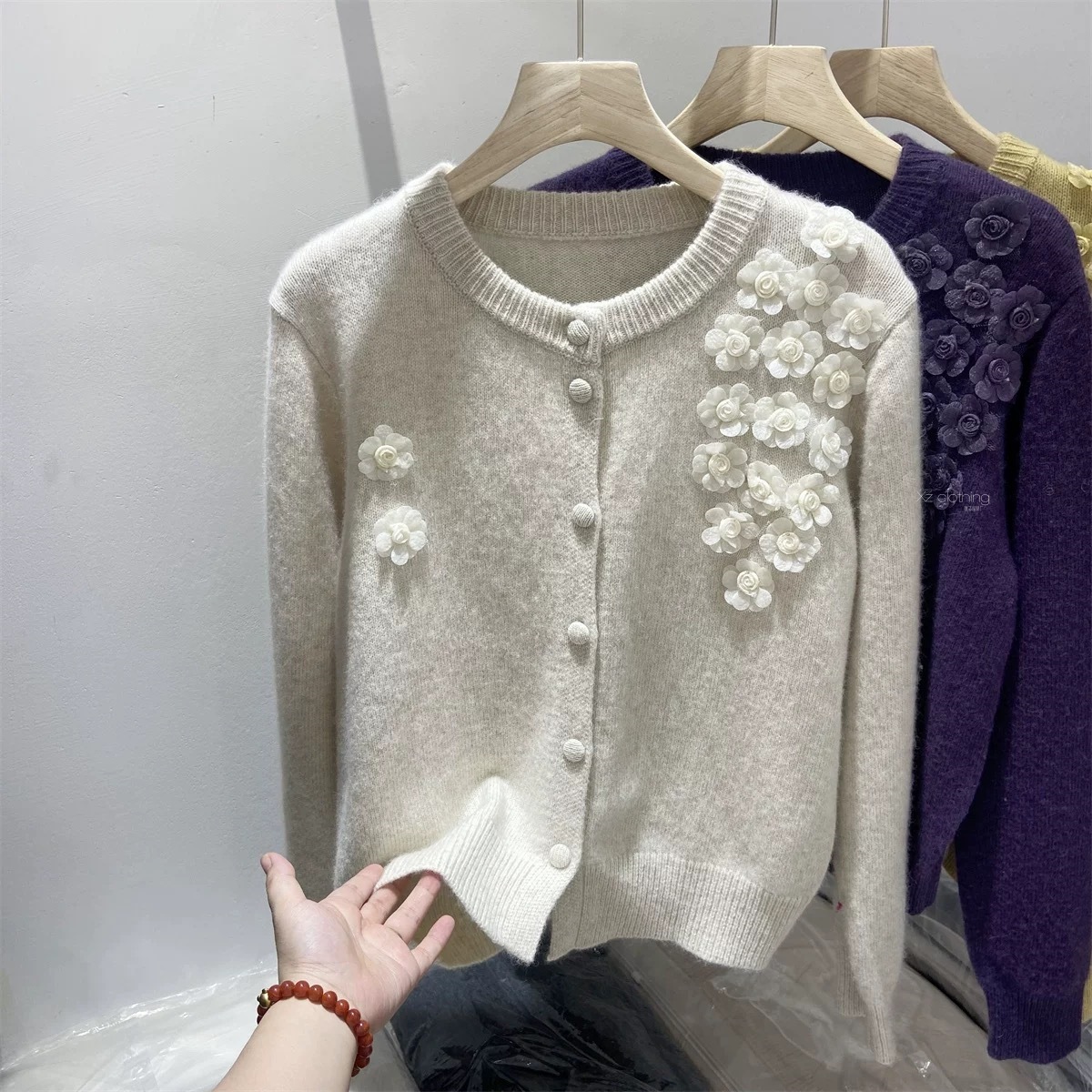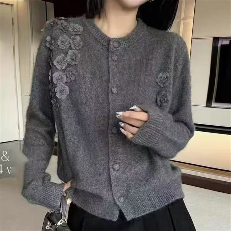 솔리드 컬러 꽃 자수 디자인 센스 탑 올 매치 웨스턴 스타일 니트 카디건 긴 소매 우아한 나이 감소 캐주얼 스웨터스토어 가기