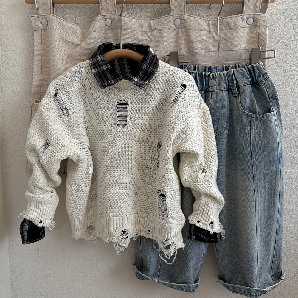 소년의 새로운 스웨터 가을과 겨울 한국 스타일 패셔너블 쿨 더피 잘 생긴 소년베이스 셔츠 세련된 어린이 니트 자켓스토어 가기