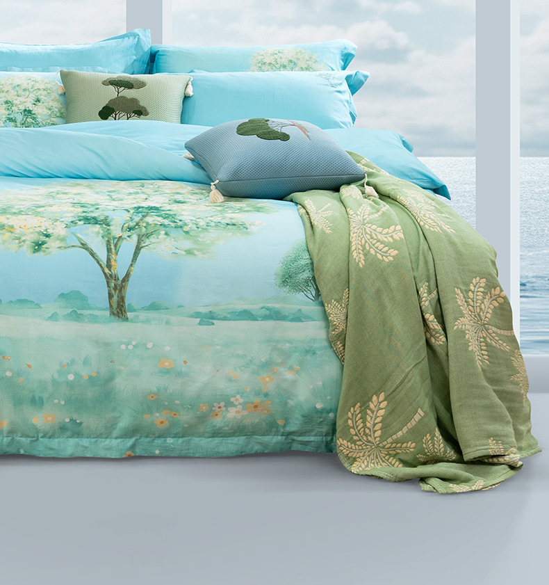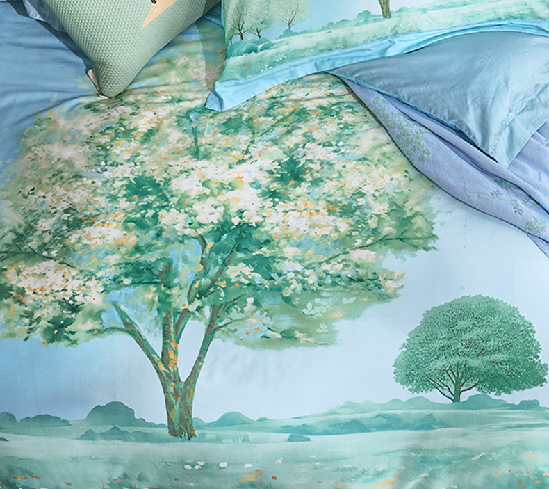 Yuanmeng 홈 섬유 면 4 종 세트 숲 자연 생활 면화 침대 시트 퀼트 커버 목회 스타일 침구 상인 슈퍼 동일