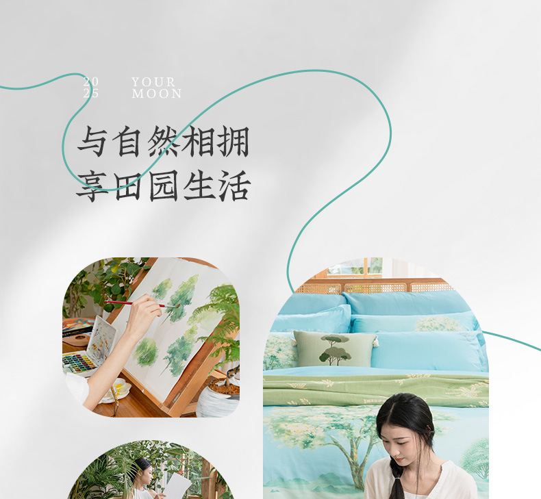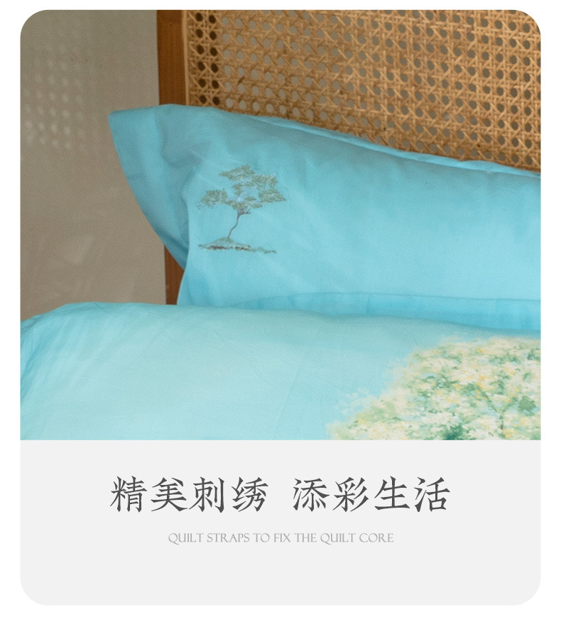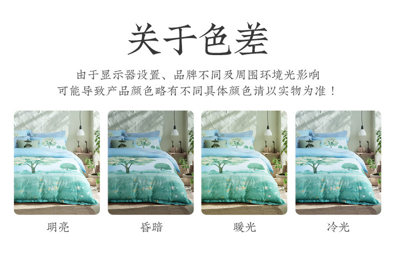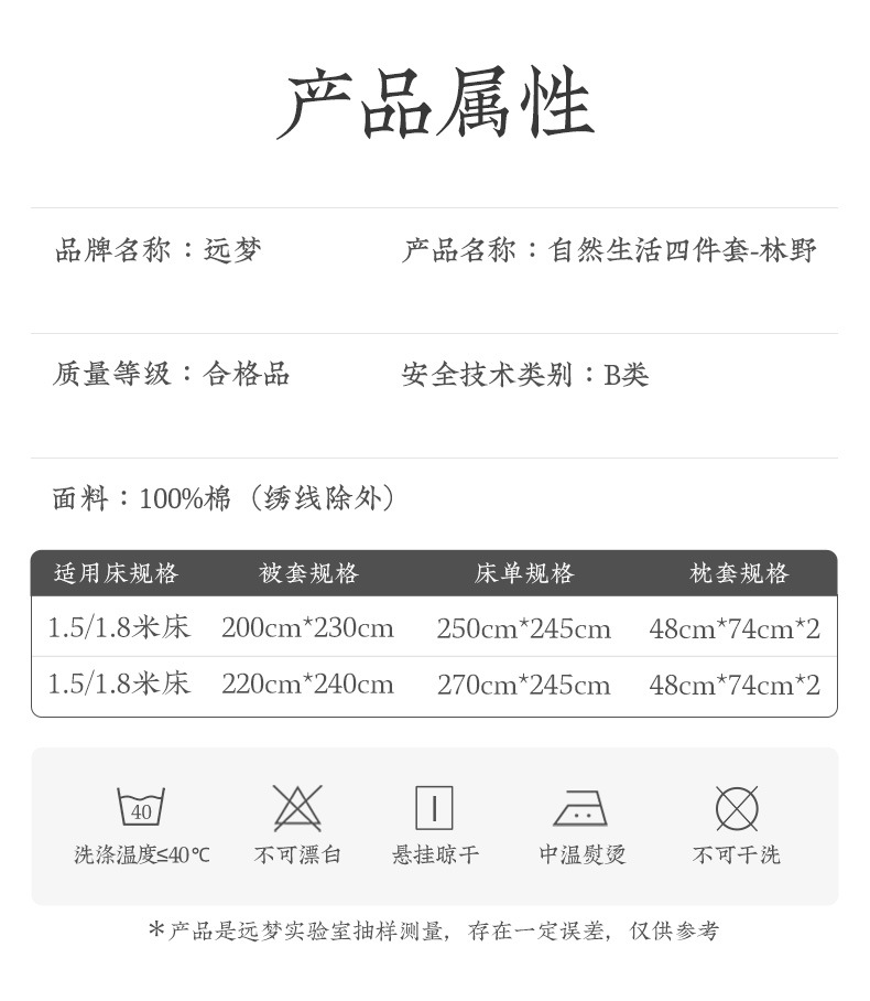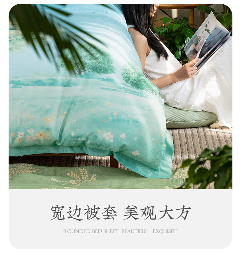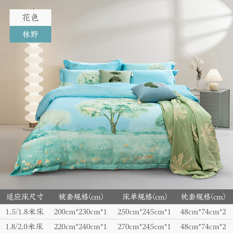 Yuanmeng 홈 섬유 면 4 종 세트 숲 자연 생활 면화 침대 시트 퀼트 커버 목회 스타일 침구 상인 슈퍼 동일스토어 가기