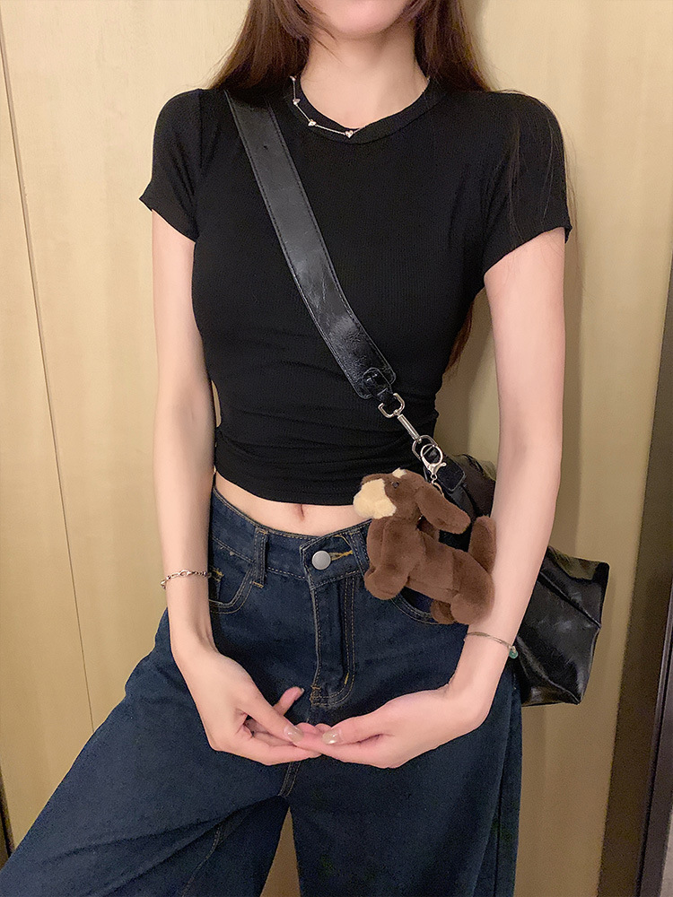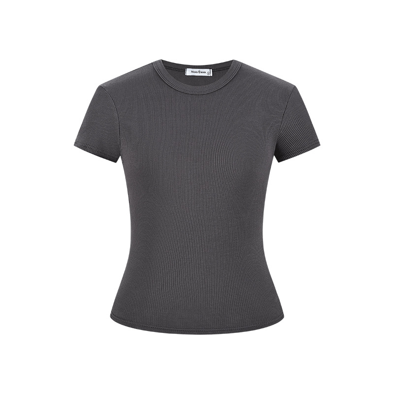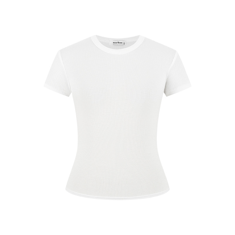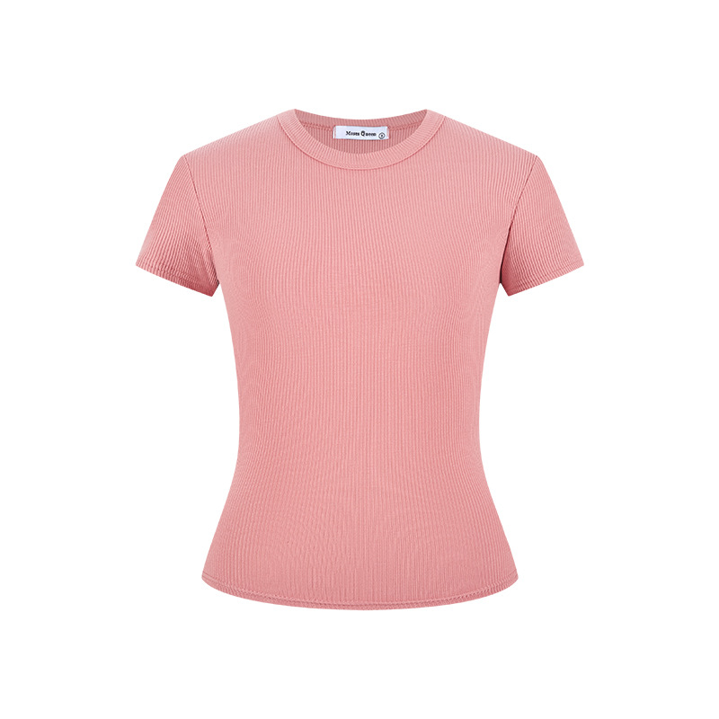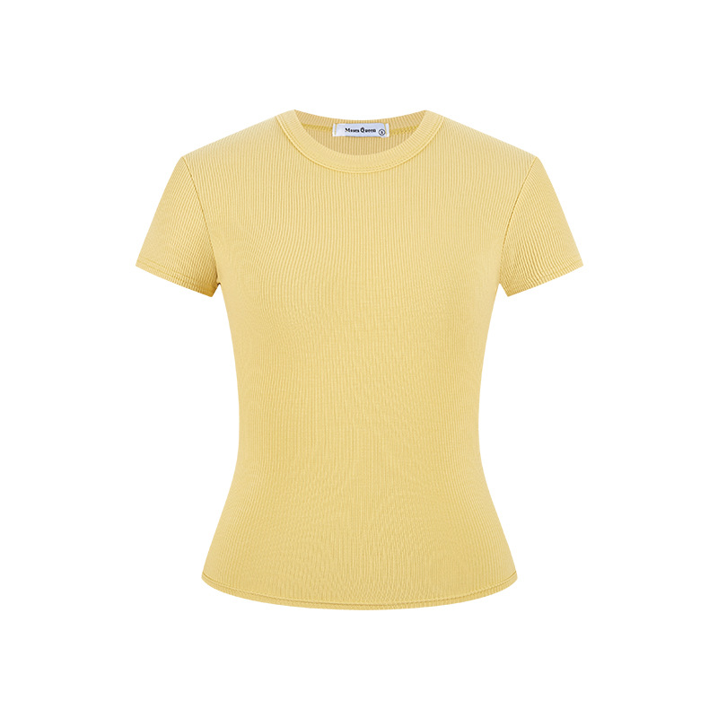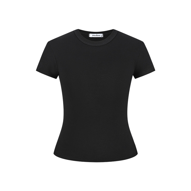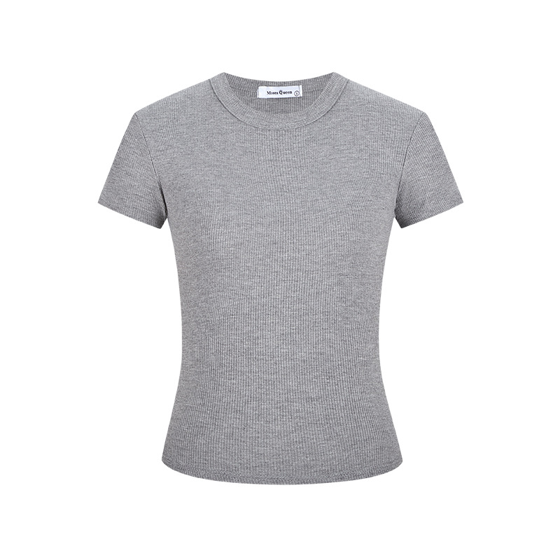 실제 샷 재고 슬림 크루 넥 쇼트 슬리브 티셔츠 여성용 타이트한 2025 년 봄과 여름 육류로 덮은베이스 코트