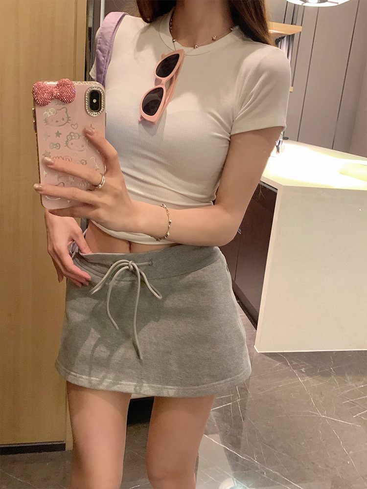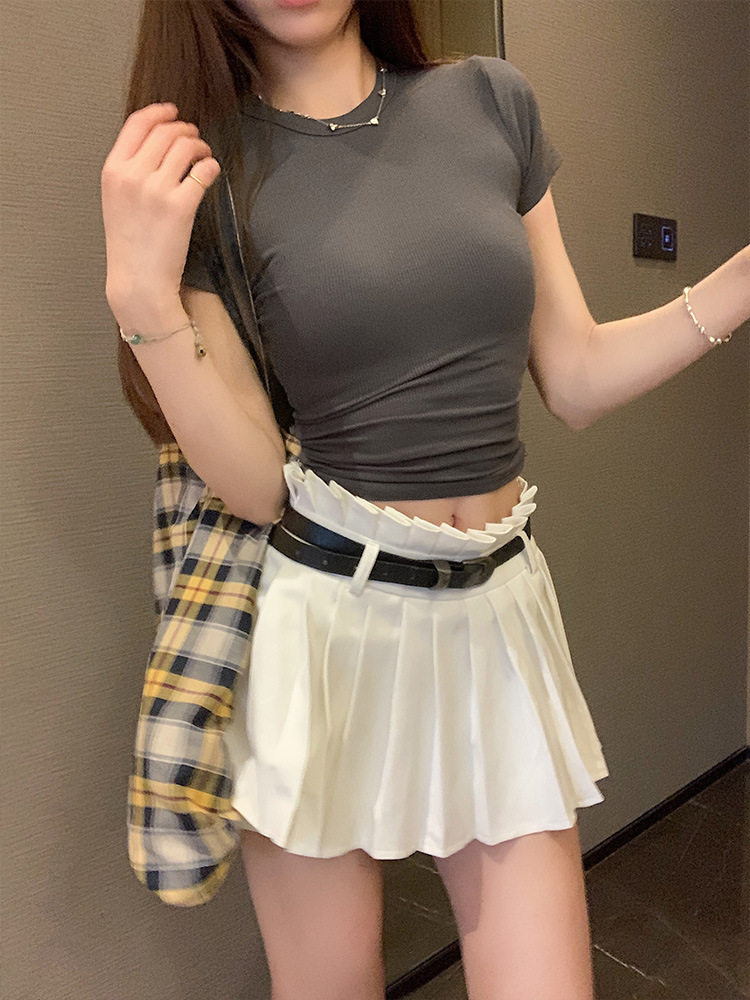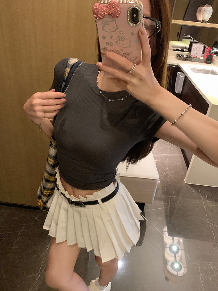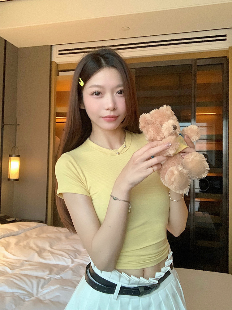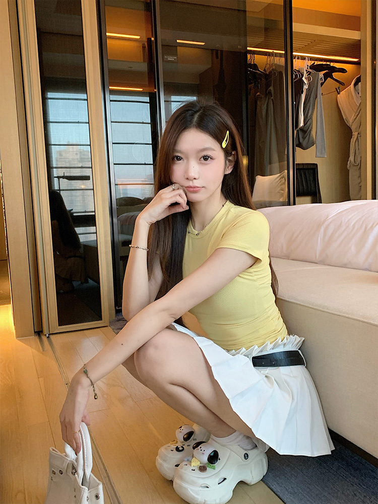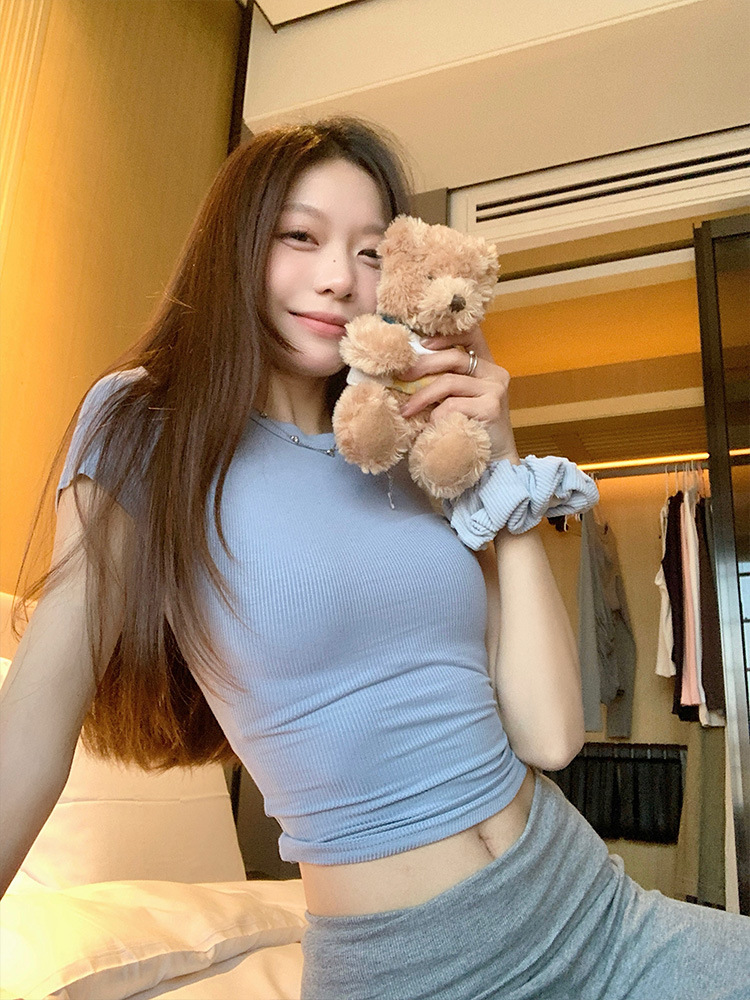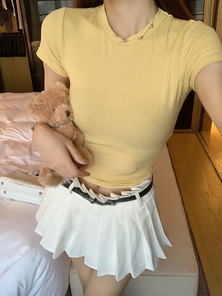 실제 샷 재고 슬림 크루 넥 쇼트 슬리브 티셔츠 여성용 타이트한 2025 년 봄과 여름 육류로 덮은베이스 코트