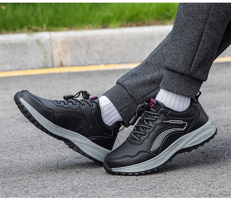 어머니 신발 봄과 가을 정품 가죽 패션 캐주얼 신발 중년 및 노인 걷기 신발 소프트 단독 경량 운동화 신발 노인을위한