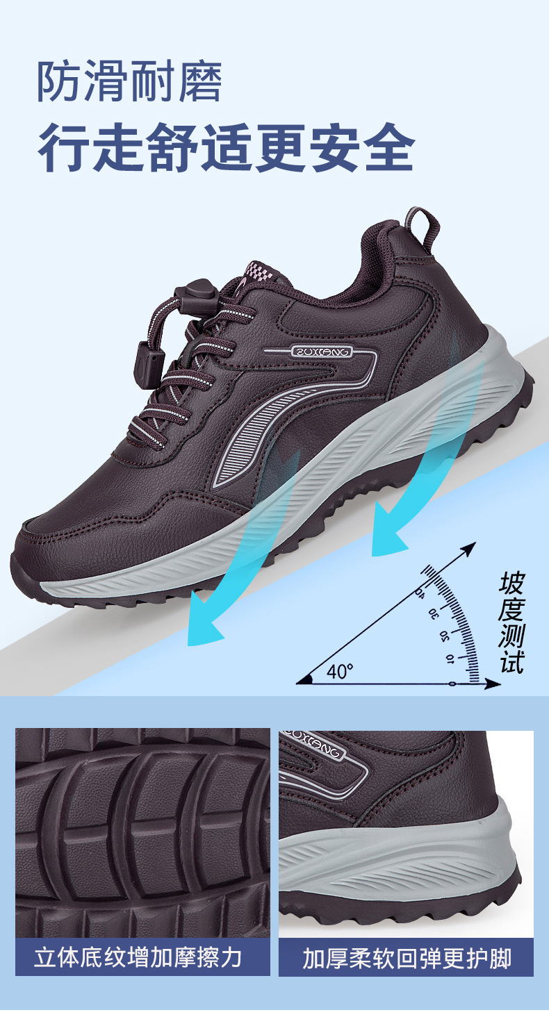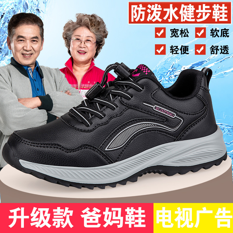 어머니 신발 봄과 가을 정품 가죽 패션 캐주얼 신발 중년 및 노인 걷기 신발 소프트 단독 경량 운동화 신발 노인을위한스토어 가기