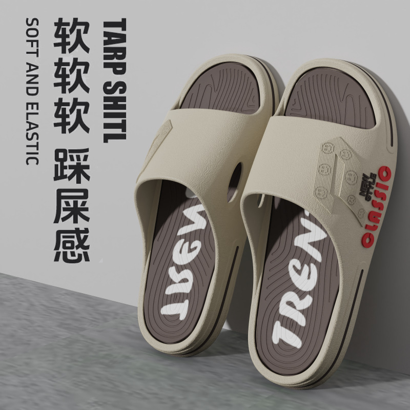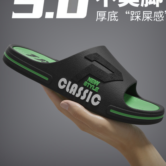 [두꺼운 바닥] 새로운 슬리퍼 남성용 겉옷 스포츠 트렌드 패션 두꺼운 바닥 슈퍼 부드러운 똥 느낌 미끄럼 캐주얼 남성