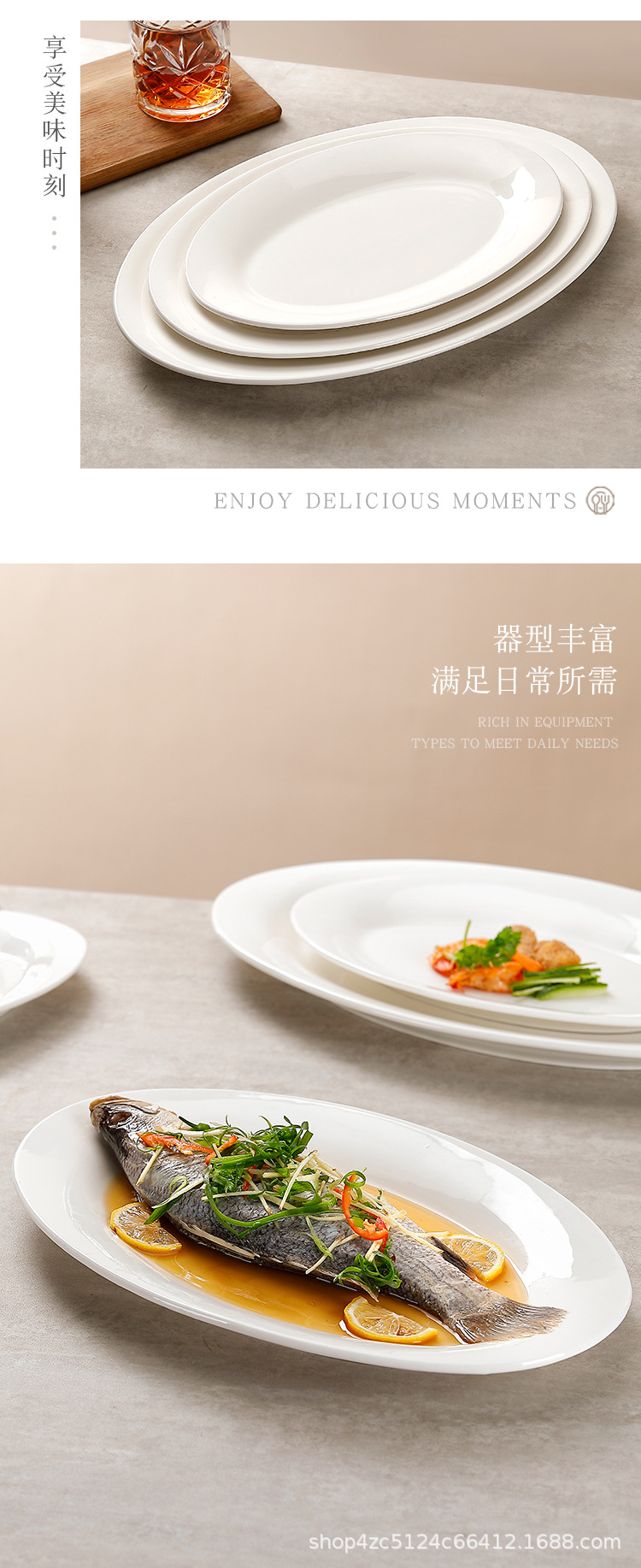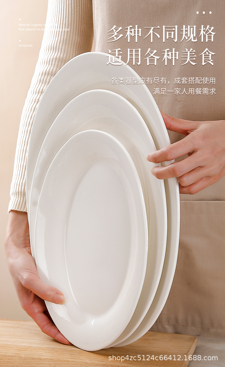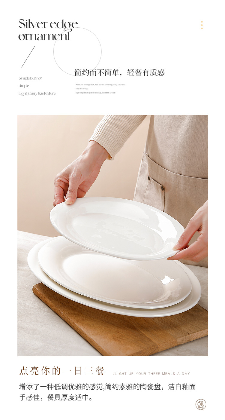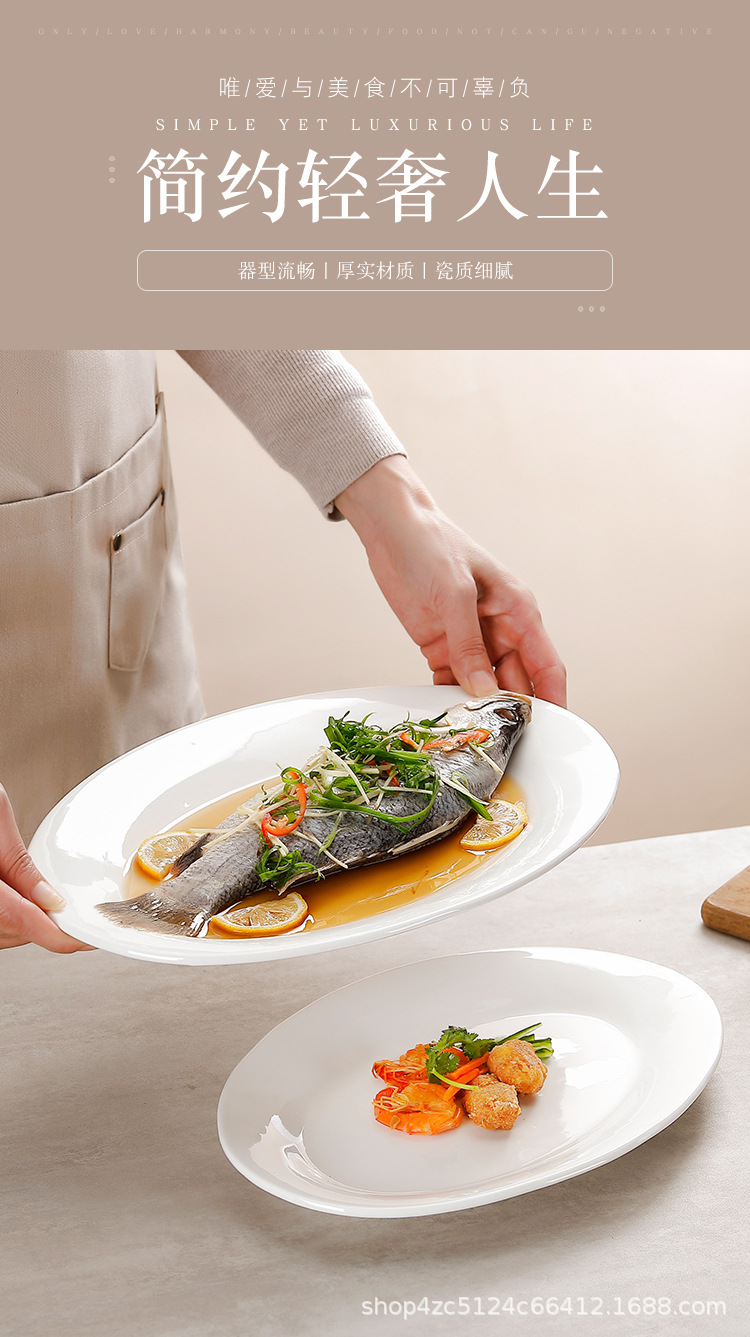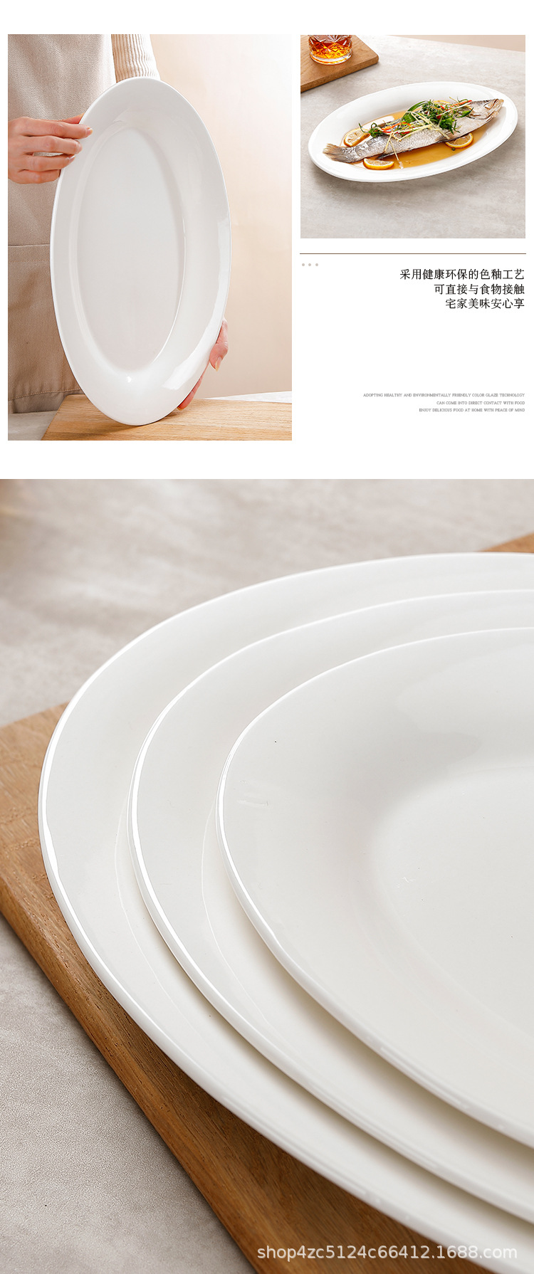 순수한 흰색 세라믹 어판 가정용 고급 감각 타원형 대형 플레이트 서양식 호텔 플레이트 식기 스테이크 플레이트스토어 가기