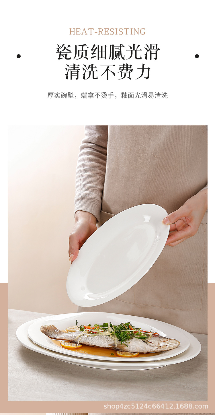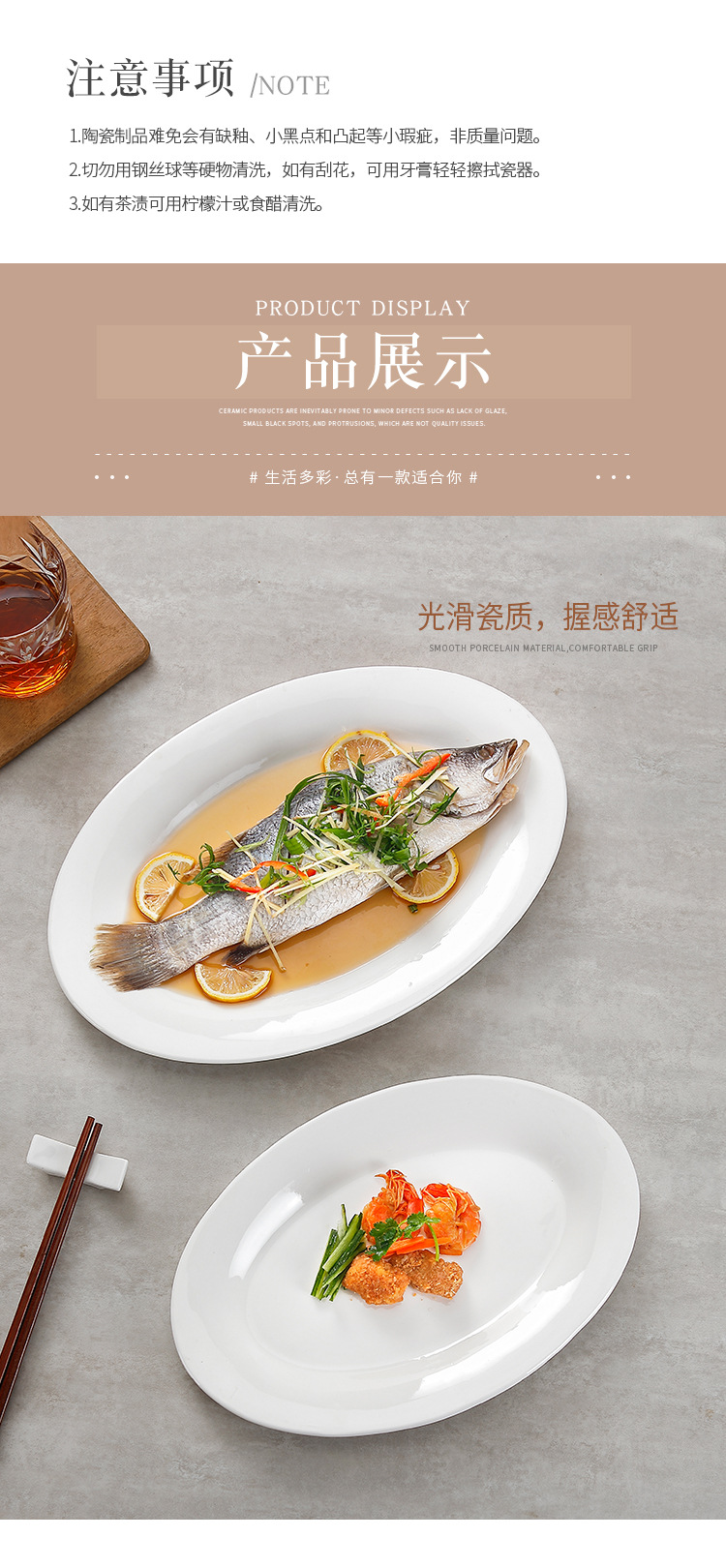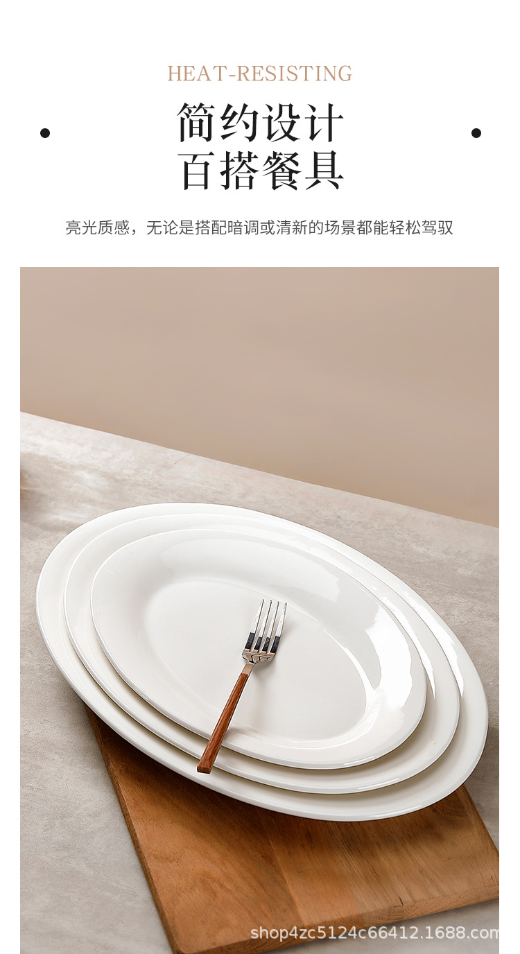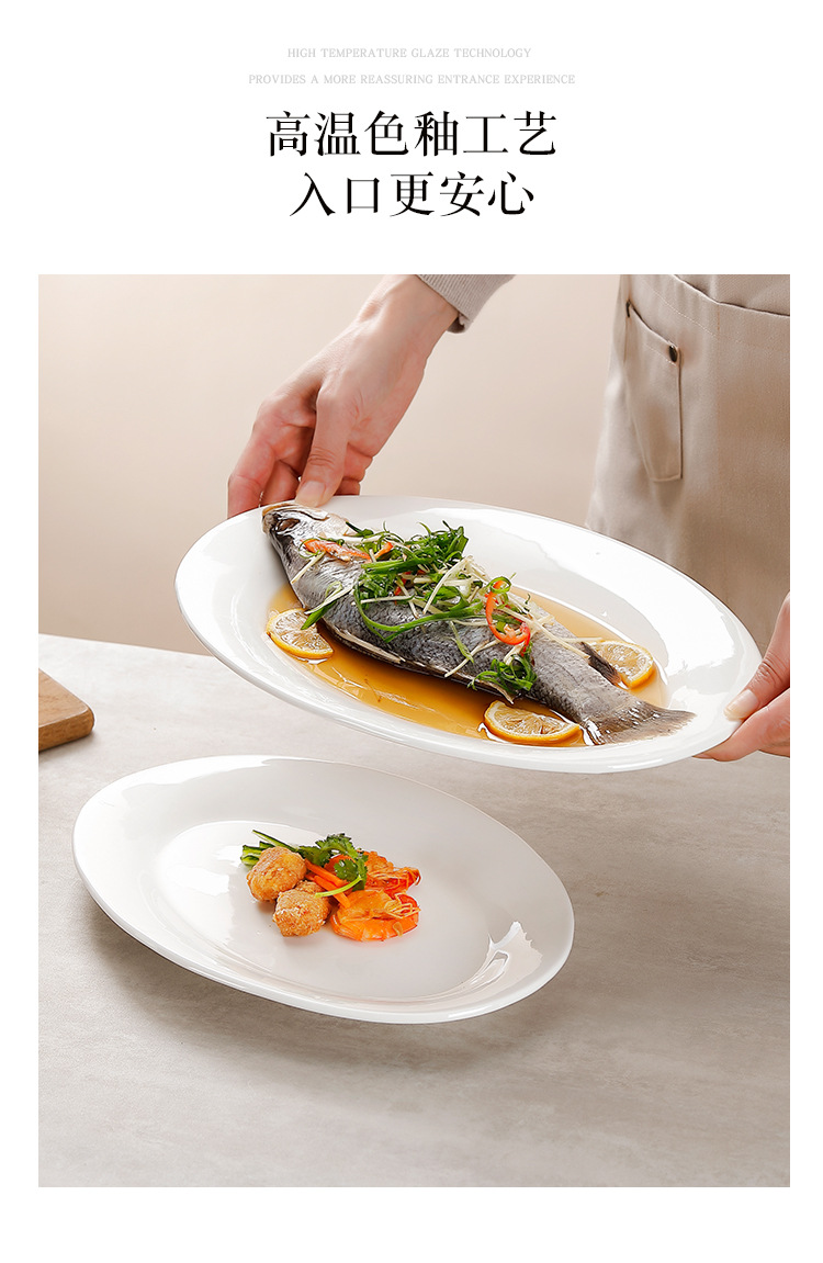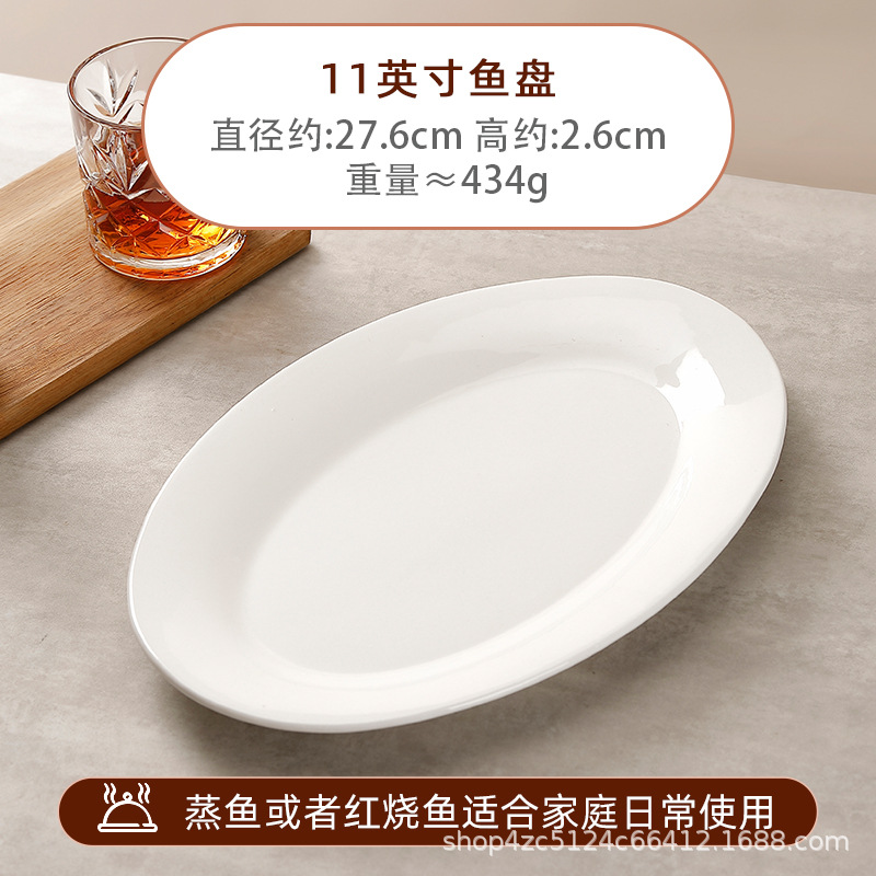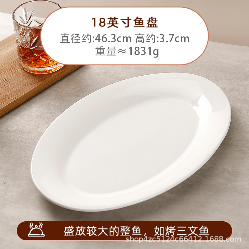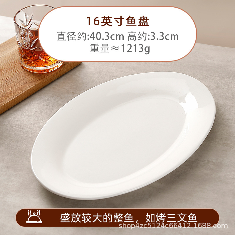 순수한 흰색 세라믹 어판 가정용 고급 감각 타원형 대형 플레이트 서양식 호텔 플레이트 식기 스테이크 플레이트스토어 가기