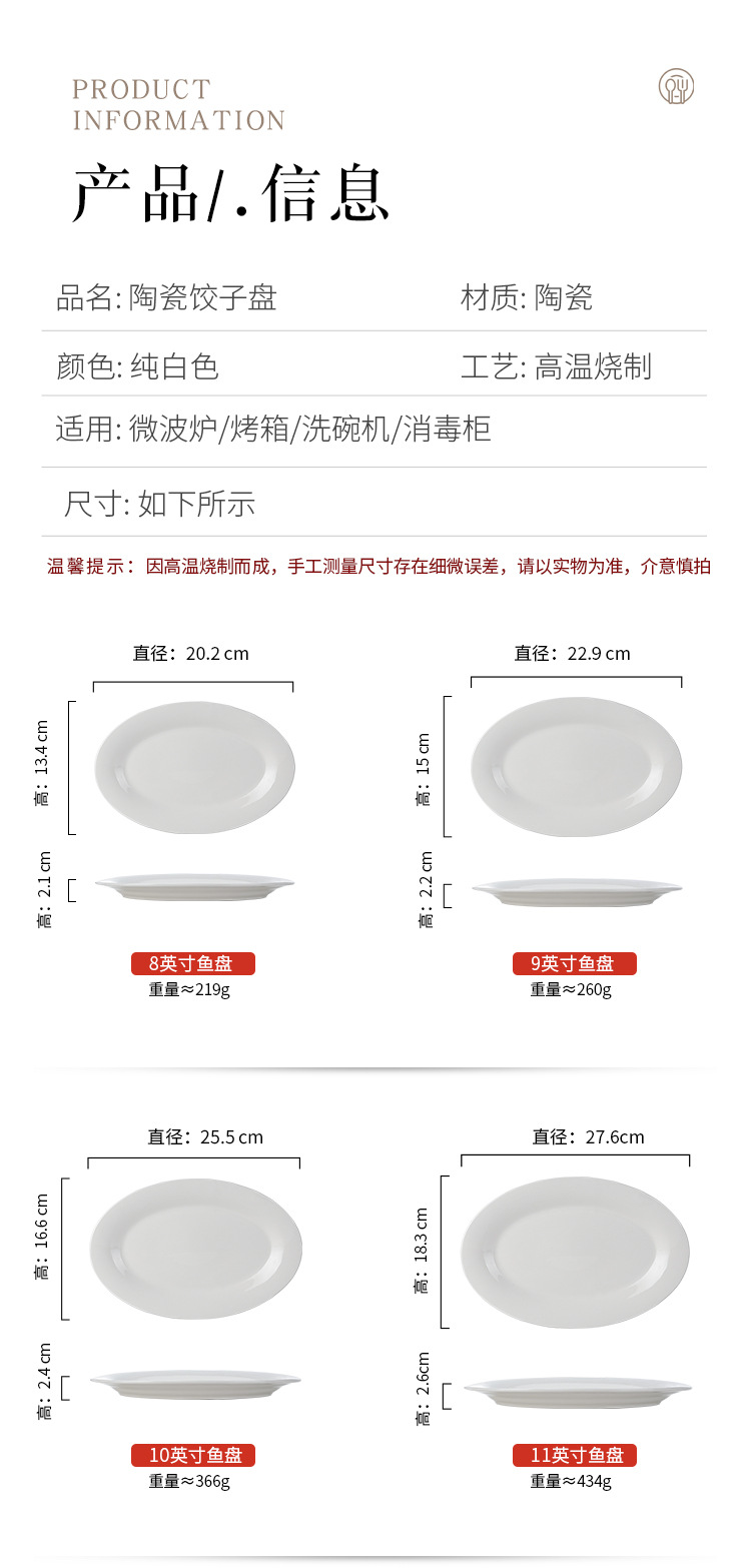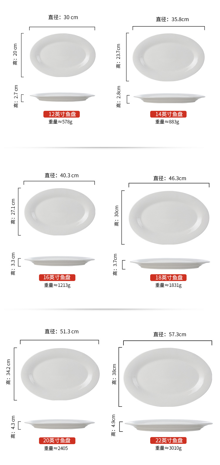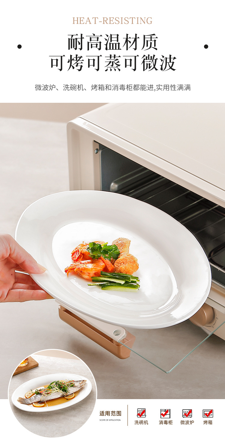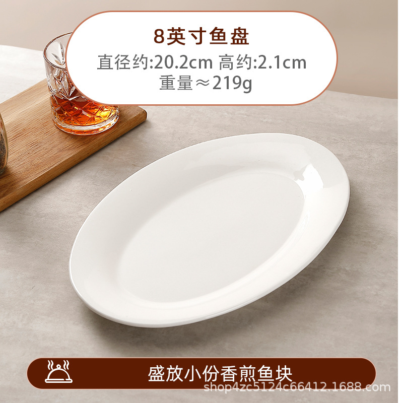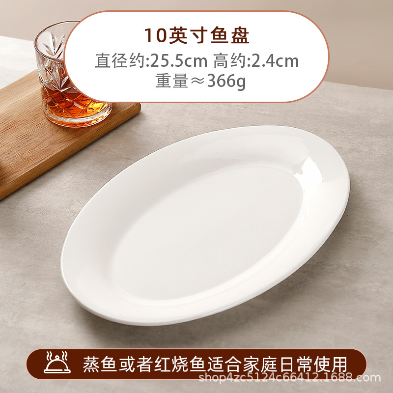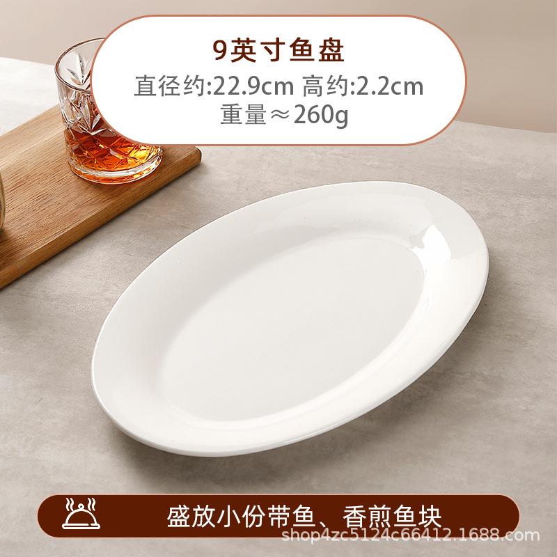 순수한 흰색 세라믹 어판 가정용 고급 감각 타원형 대형 플레이트 서양식 호텔 플레이트 식기 스테이크 플레이트스토어 가기