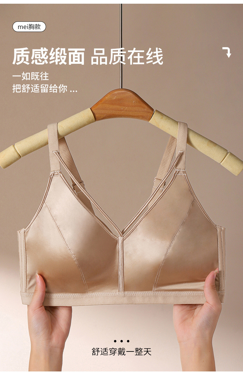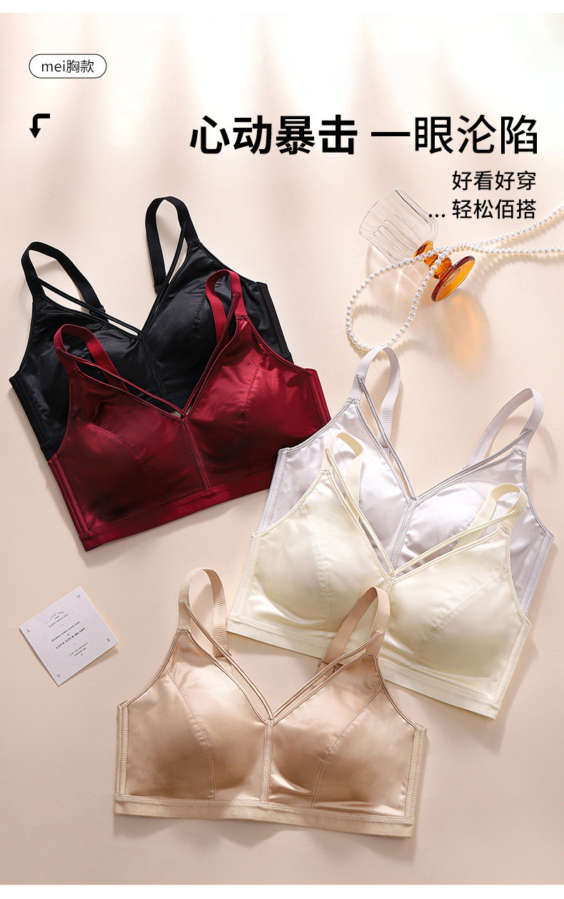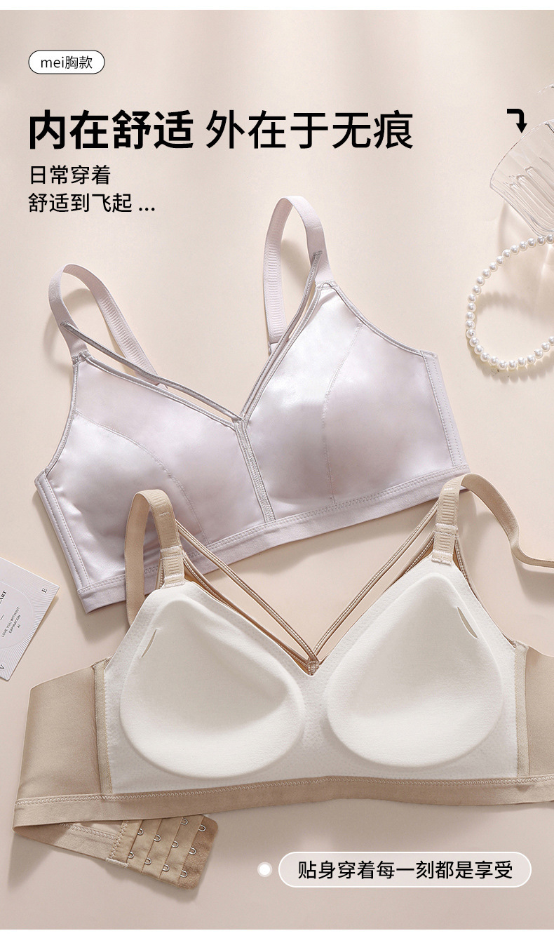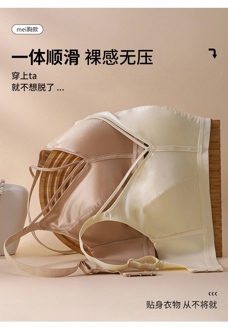 7A 항균 유방 벨트 디자인 하이 엔드 새틴 비 마킹 속옷 여성의 작은 가슴 푸시 업 안티 처짐 비 테두리 브라 여성스토어 가기
