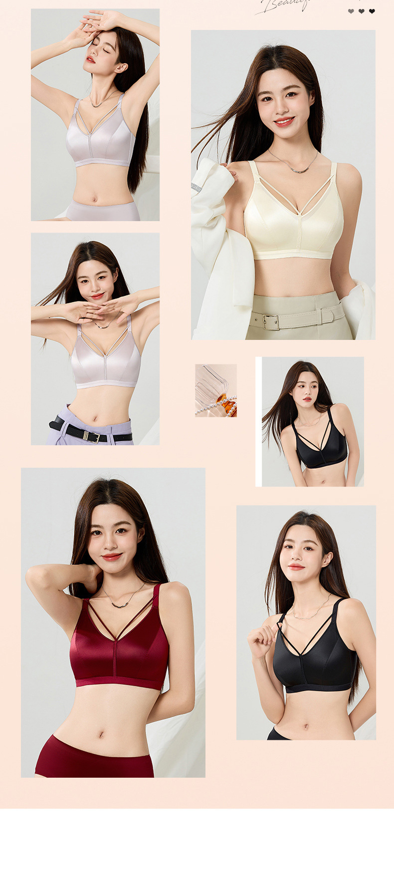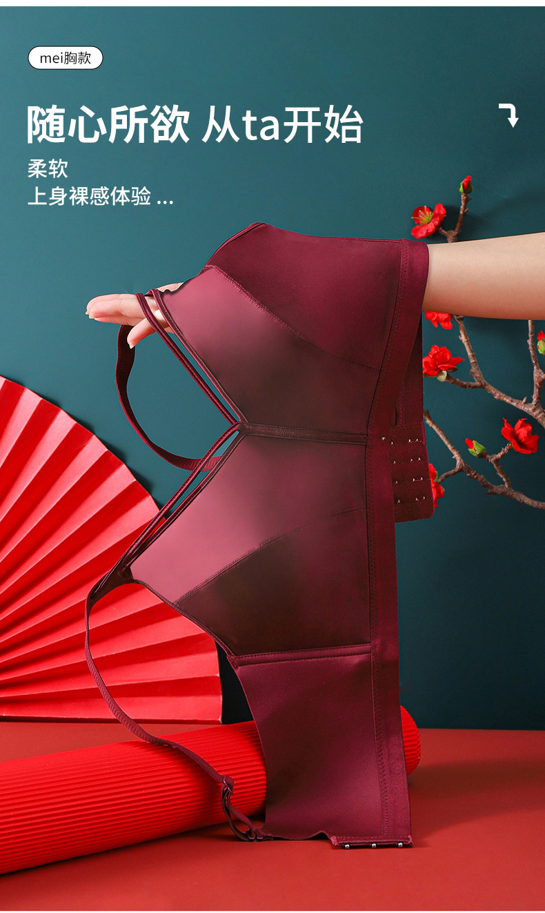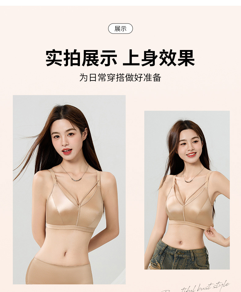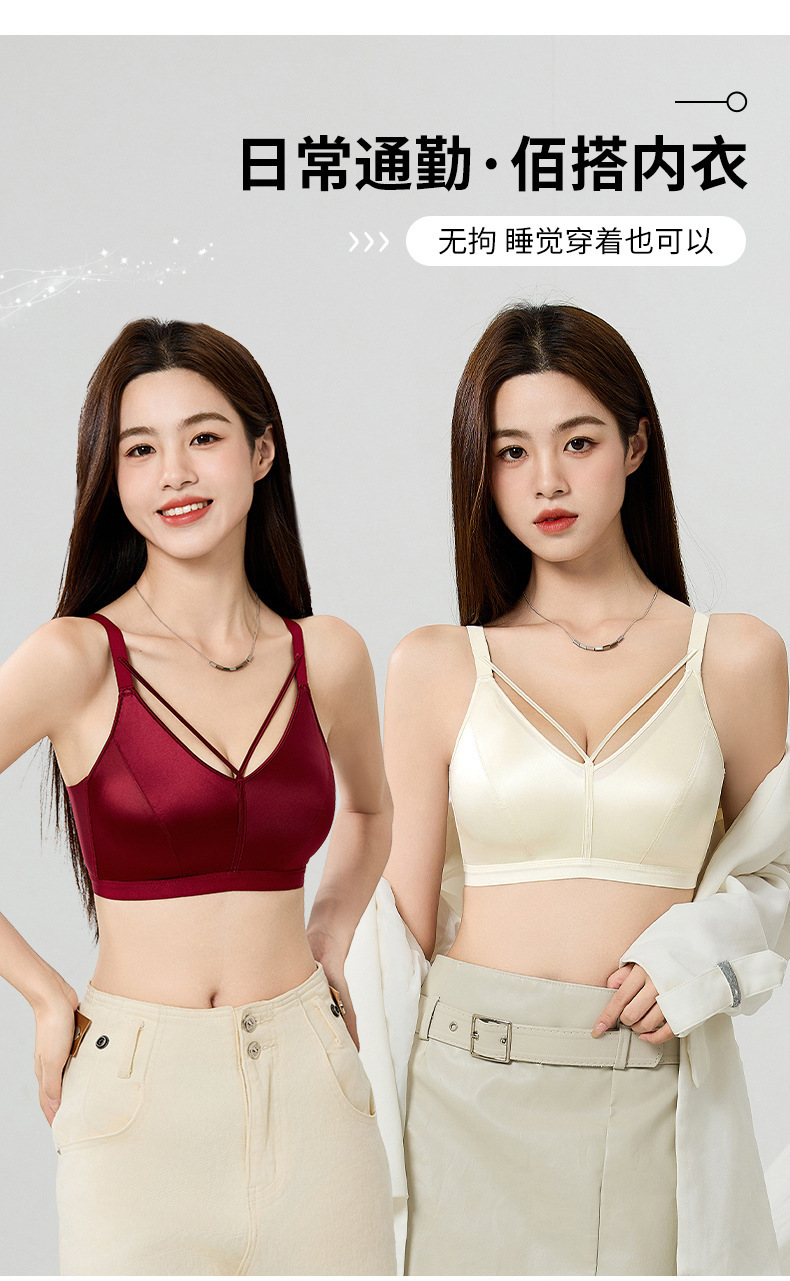 7A 항균 유방 벨트 디자인 하이 엔드 새틴 비 마킹 속옷 여성의 작은 가슴 푸시 업 안티 처짐 비 테두리 브라 여성스토어 가기