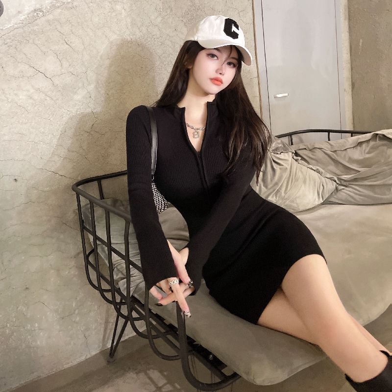 봄 검은 원피스 어린이 가을과 겨울 2025 새로운 세미 하이 칼라베이스 스커트 엉덩이 스커트스토어 가기