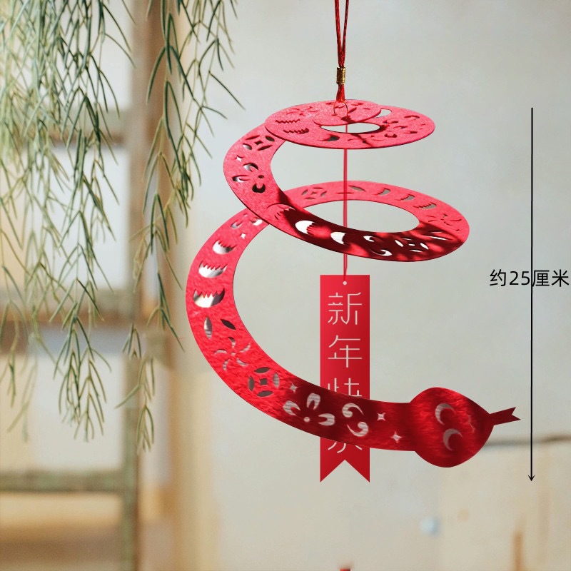 2025 년 스네이크 조디악 만화 크리 에이 티브 꽃 봄 축제 펜던트 안락 장식 매달려 매달려 매달려 카드 바람 종