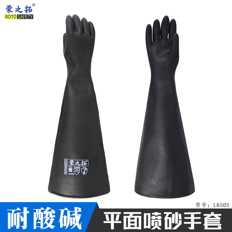 입상 장갑 샌드 블라스팅 기계 특수 내마모성 라텍스 장갑 왼손과 오른손으로 두껍게하고 길어진 샌드 블라스팅 장갑스토어 가기