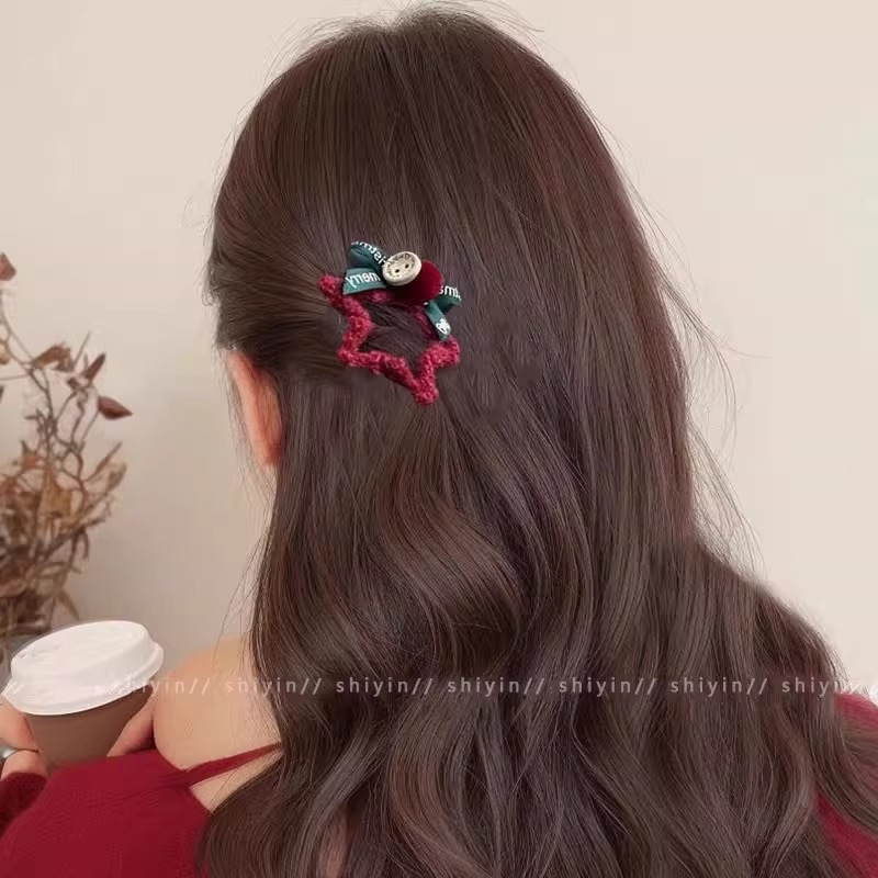 레드 스타 헤어핀 여성 신년 헤드웨어 Bangs 클립 활 사이드 클립 사이드 귀여운 헤어 액세서리 작은 클립스토어 가기
