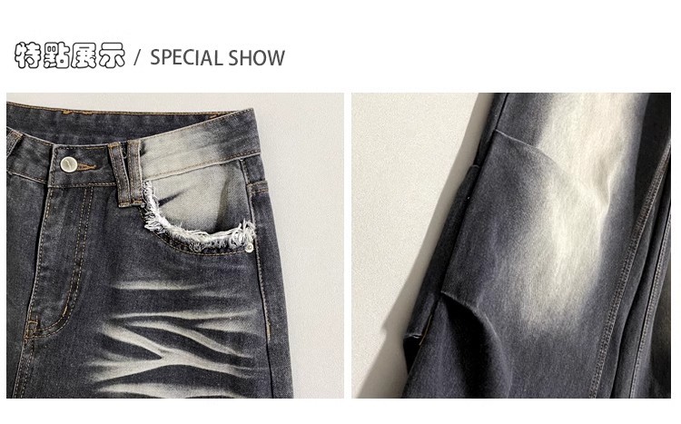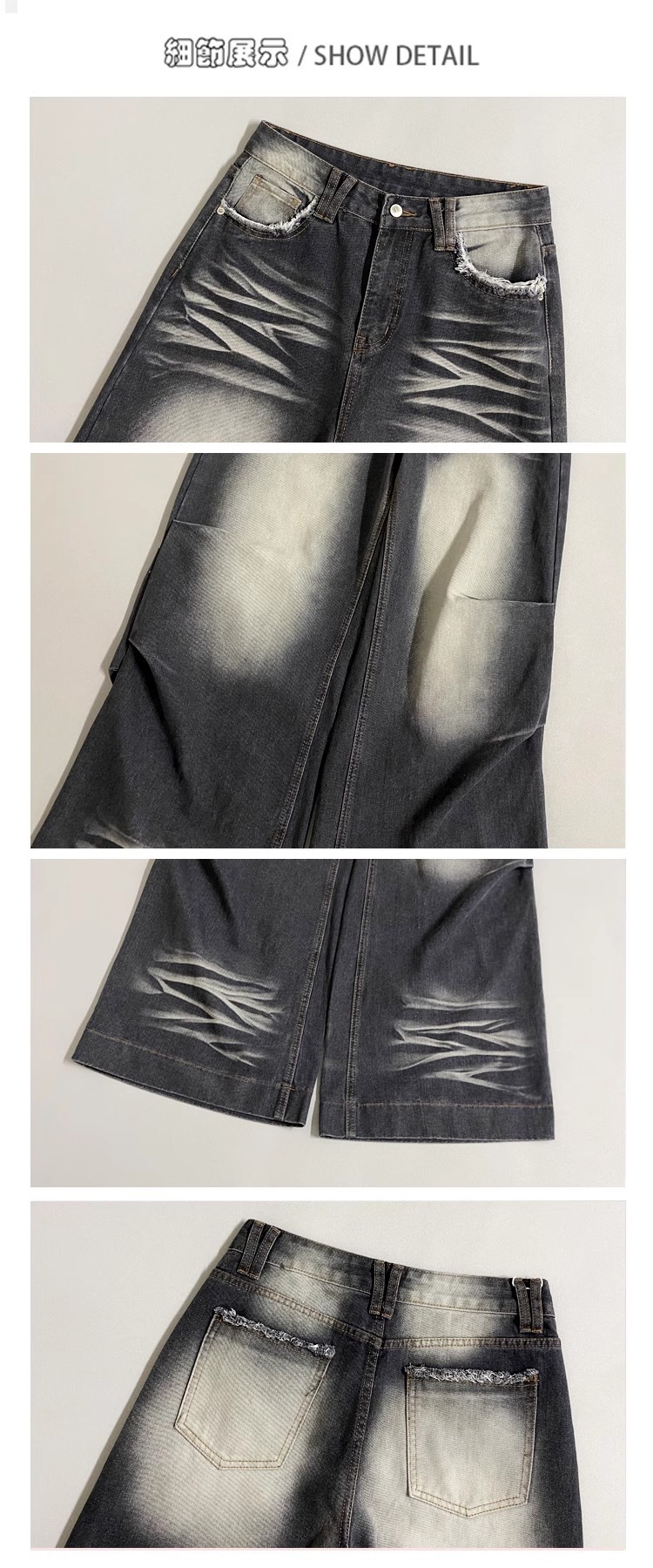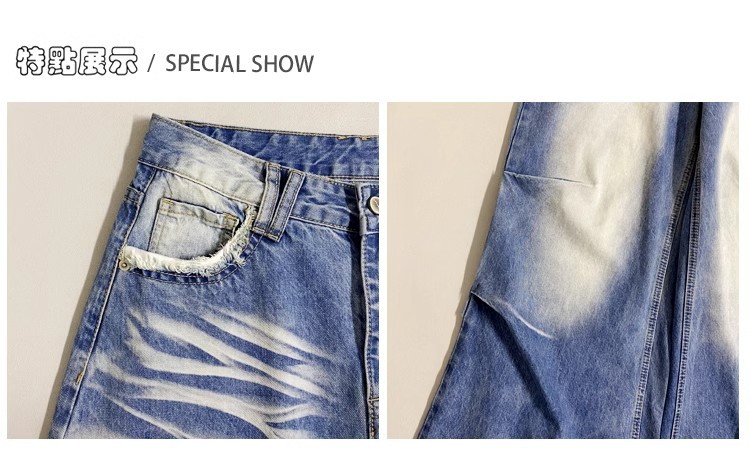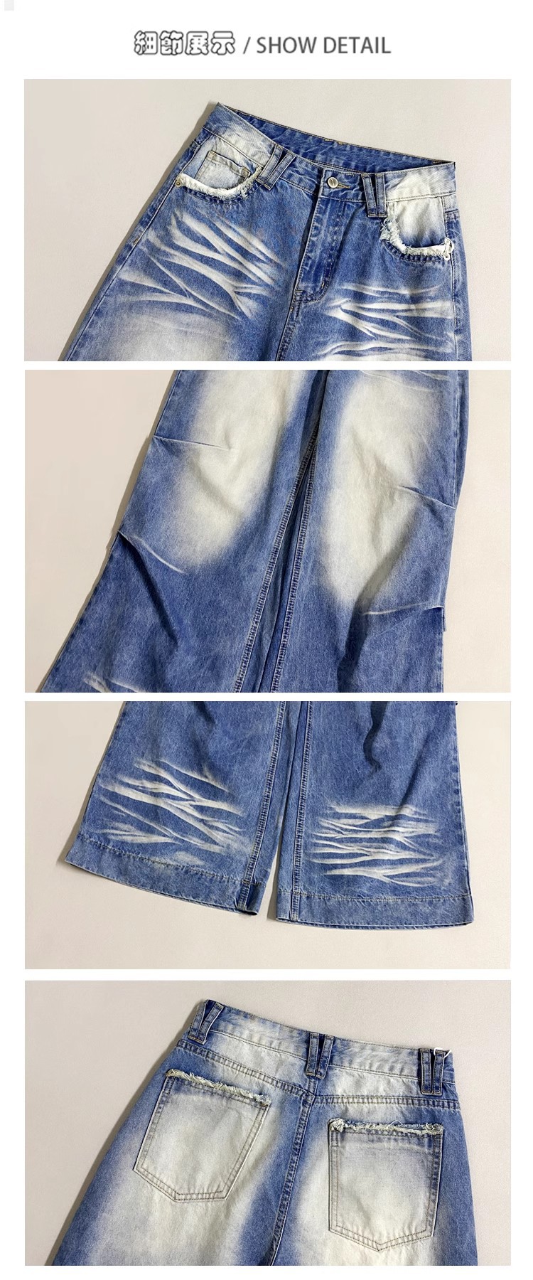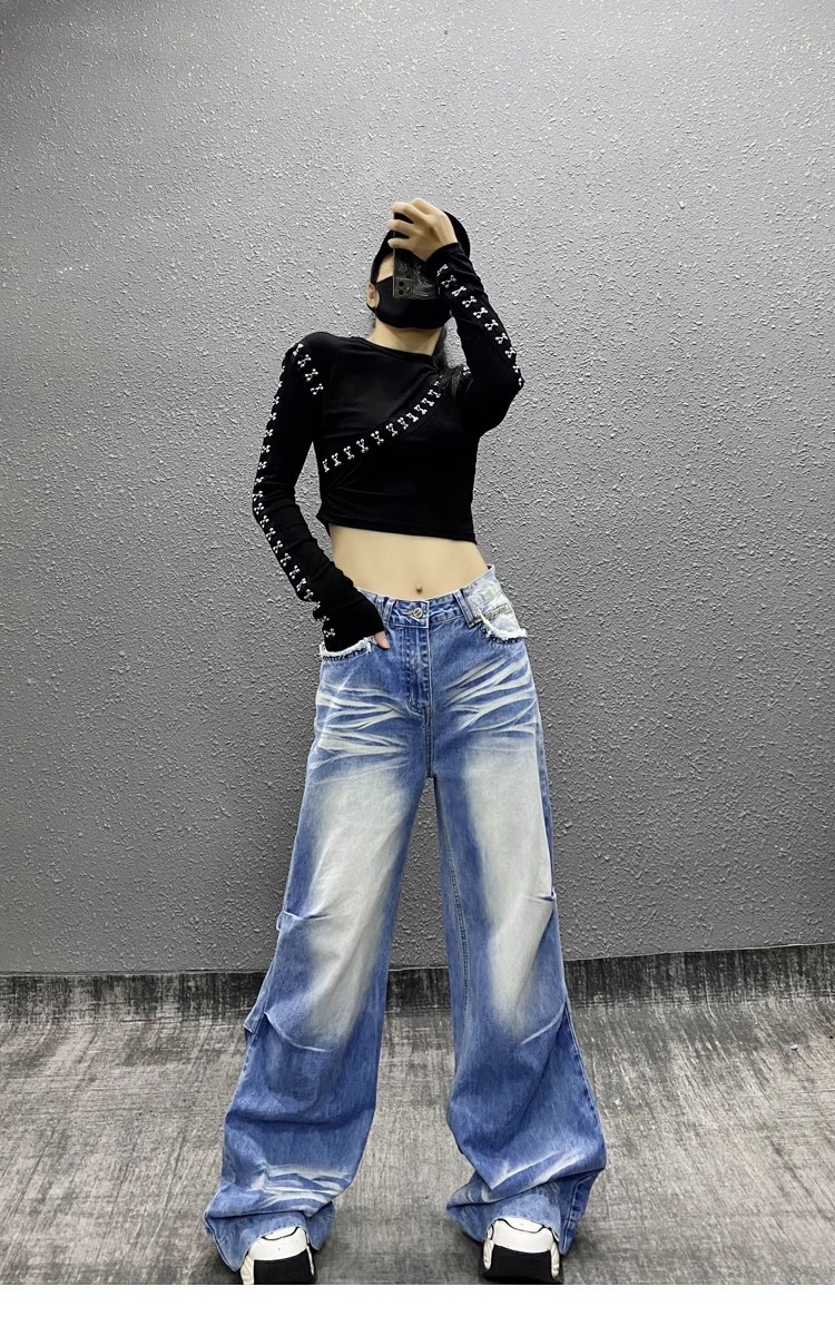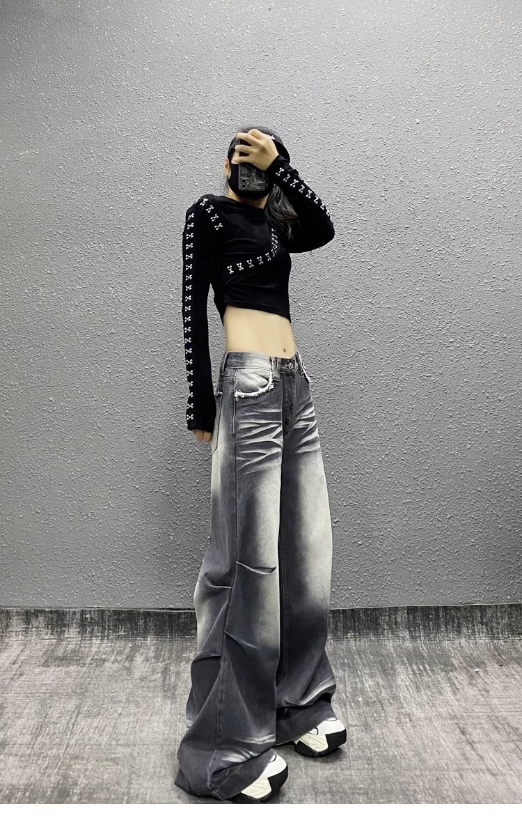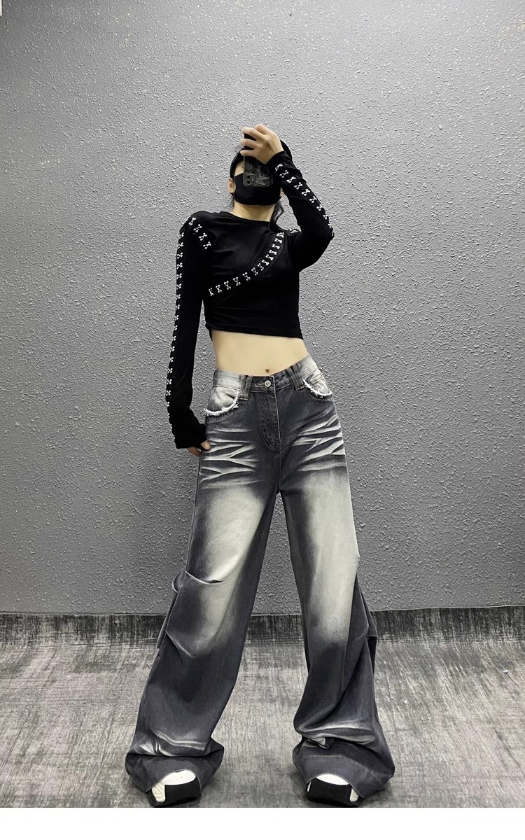 잘 생긴 타이-염료 주름 디자인 넓은 다리 청바지 여성의 2025 새로운 높은 허리 느슨한 슬리밍 스트레이트 다리 바지스토어 가기