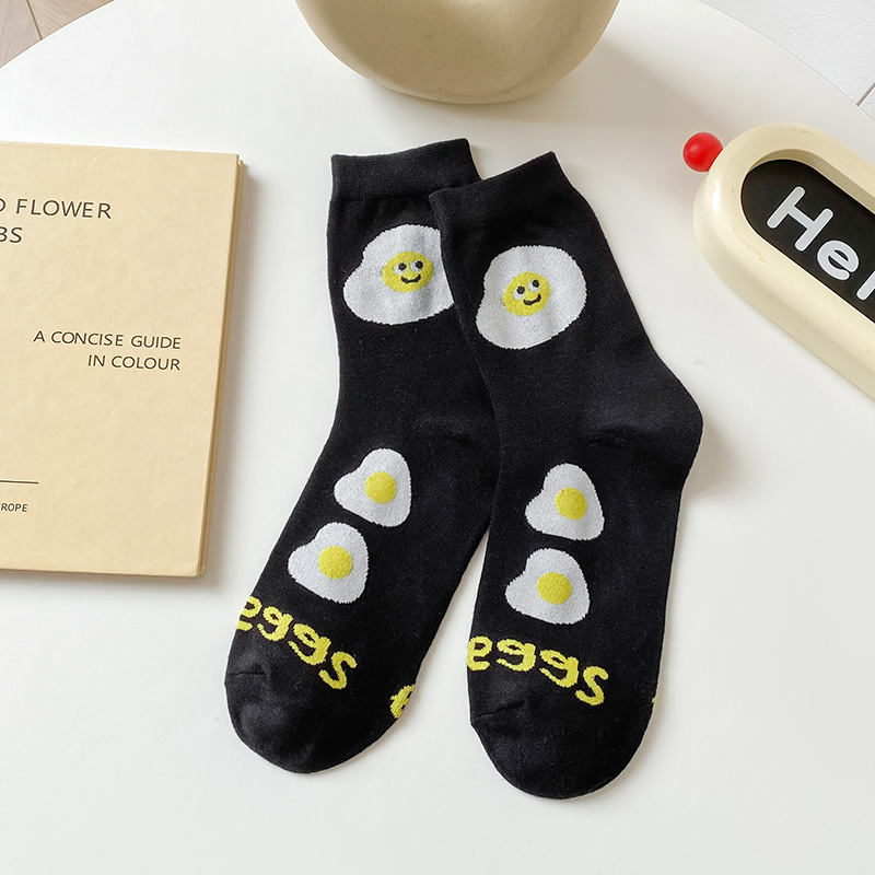 국경 간 스마일리 양말 여성면 만화 미식가 중견 양말 계란 피자 사이버 연예인 Ins 유행 편지 소녀 양말스토어 가기